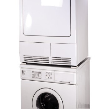 - bei der Kombination von Waschmaschine und Trockner zur Säule werden die Fixierplatten unter die Trocknerfüße geklebt