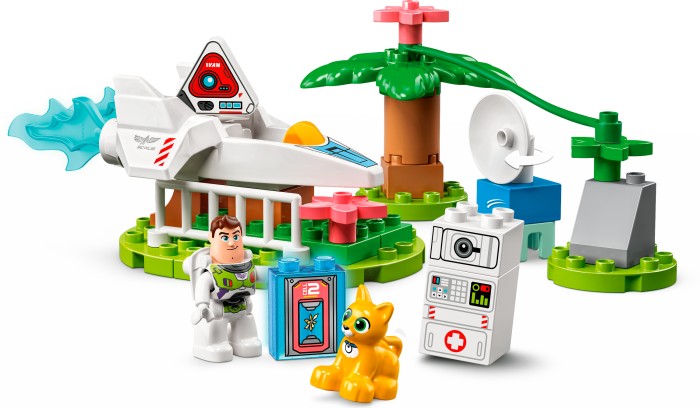 Das LEGO® DUPLO® Set „Disney und Pixar – Buzz Lightyears Planetenmission“ (10962) beinhaltet viele entwicklungsfördernde Elemente für Vorschulkinder ab 2 Jahren. Unzählige Spielabenteuer mit dem legendären Weltraumranger. Fans des Films Lightyear von Disney und Pixar und des legendären Weltraumrangers werden Buzz und seinen 3 Freunden – der Roboterkatze Sox, dem Computer IVAN und dem dreieckigen Droiden ERIC – gerne bei der Suche nach der Brennstoffzelle des Raumschiffs helfen. Befindet sie sich in der Höhle mit der aufklappbaren Tür, im Dschungel mit der Kletterranke oder in der Radarstation mit der drehbaren Radarschüssel? Mit der Brennstoffzelle an Bord kann Buzz dann zu weiteren Abenteuern aufbrechen. Dieses vielseitige Bauspielzeug fördert die Kreativität und das Vorstellungsvermögen und bringt Vorschulkindern etwas über Teamwork und den Weltraum bei.