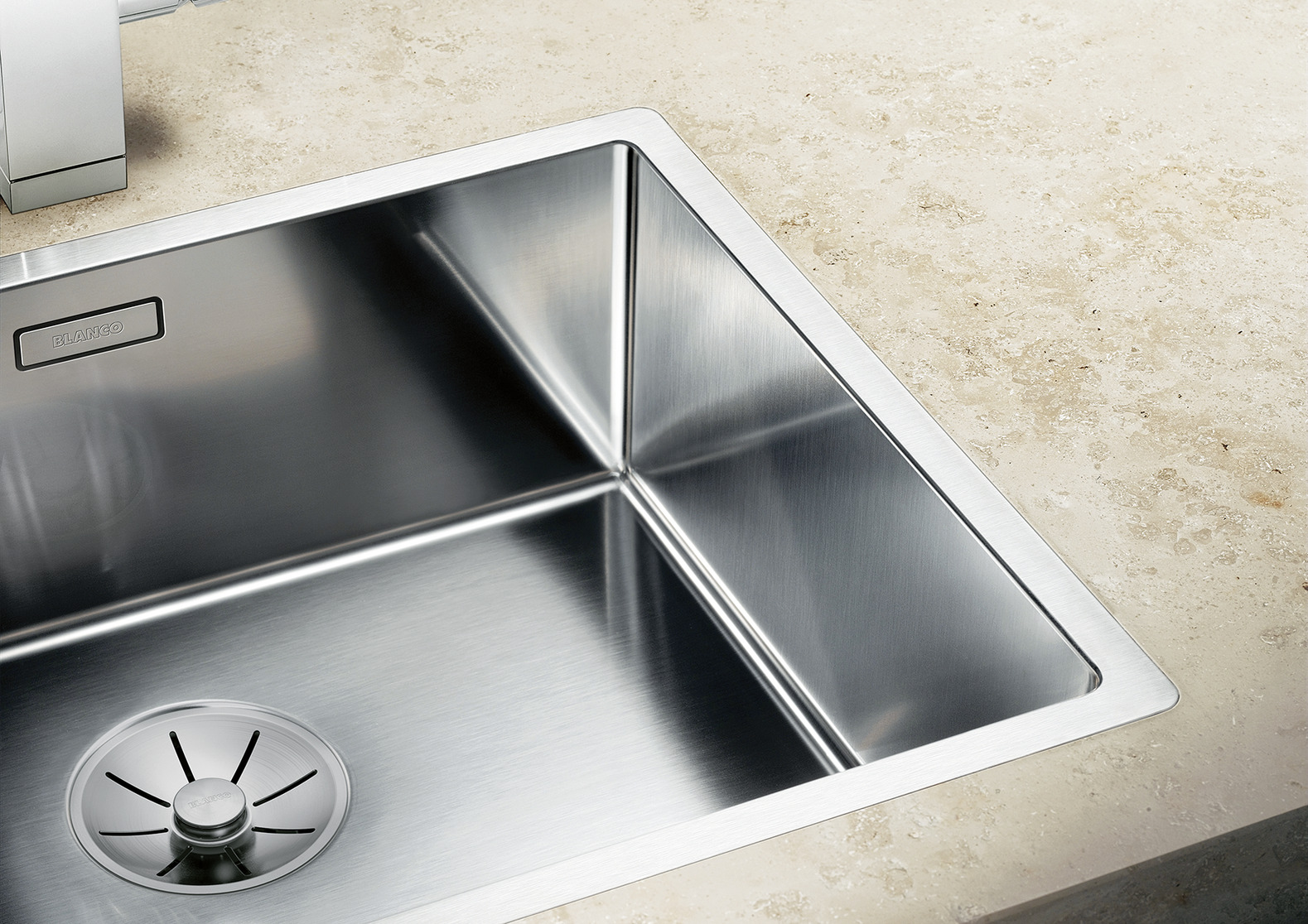 Blanco Claron 500 EDS Seidenglanz Aufliegender oder flächenbündiger Einbau möglich (521576) - Fein gearbeitete Eckradien verleihen den BLANCO CLARON Spülbecken eine außergewöhnliche Eleganz. Die handgefertigten Exklusivbecken mit dem funktionalen Design eröffnen eine nahezu grenzenlose Freiheit für die Planung Ihrer Küche. Zahlreiche Beckenformate bieten perfekte Lösungen für jede Küche und ermöglichen attraktive Kombinationen¬ – für konventionellen und flächenbündigen Einbau oder als Unterbaubecken.