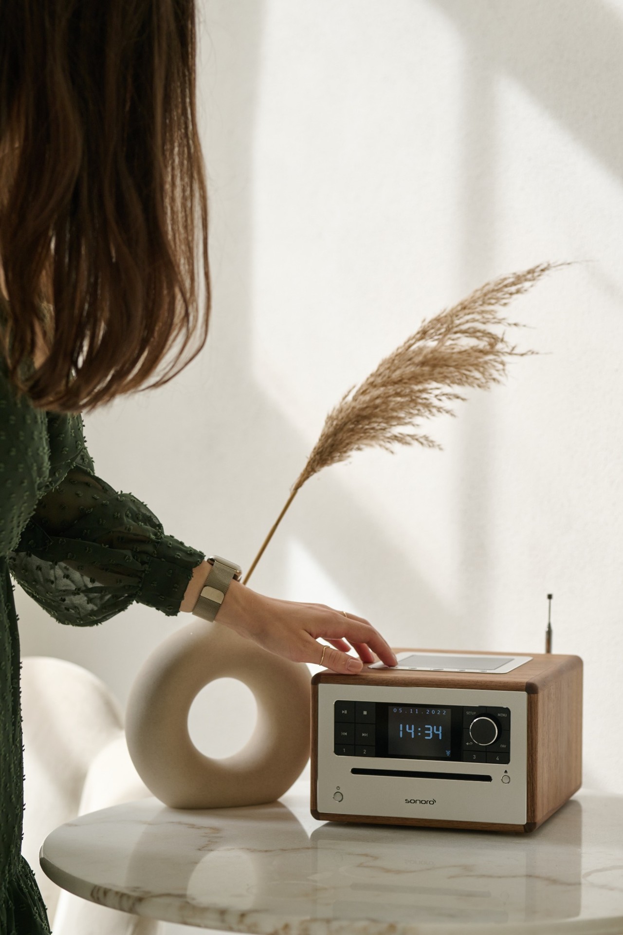Erleben Sie ausgewogenen Sound mit unserem ELITE All-in-One Musiksystem: Der Lautsprecher an der Oberseite des Geräts verteilt den Klang gleichmäßig im Raum – ideal für kleine bis mittelgroße Räume wie Ihr Schlafzimmer, Gäste- oder Arbeitszimmer.