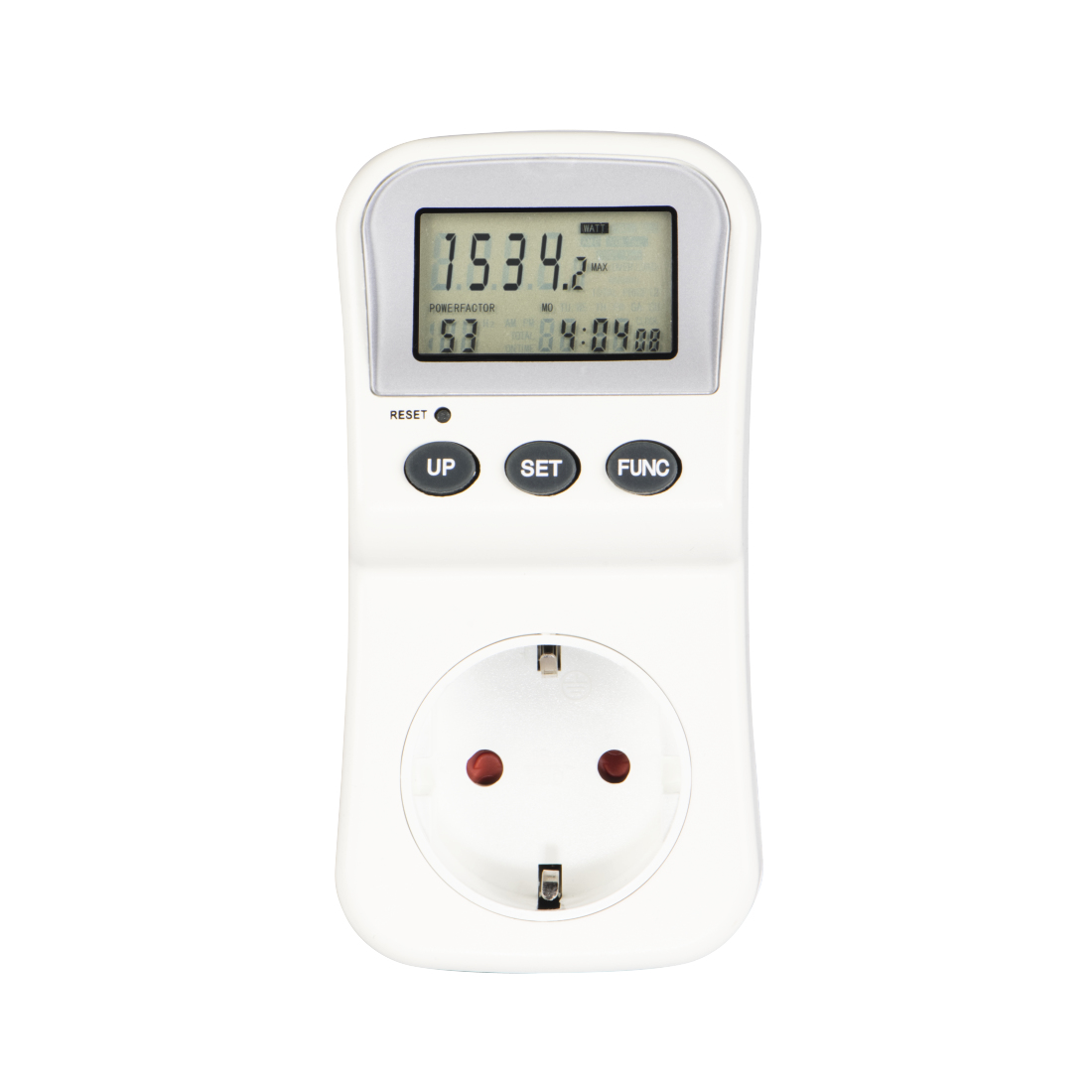Eigenschaften "Energiekostenmessgerät mit LCD-Anzeige, digitaler Stromzähler für Steckdose (223561)"