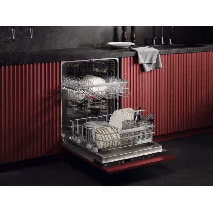 AEG Geschirrspüler der Serie 7000 verfügen über eine hohe Wassereffizienz und effektive Reinigungsleistung bei einem geringen Wasserverbrauch von nur 8,4 Litern dank des neuen Wassersystems. Die flexiblen Körbe mit klappbaren Bereichen sorgen für ein müheloses Beladen.