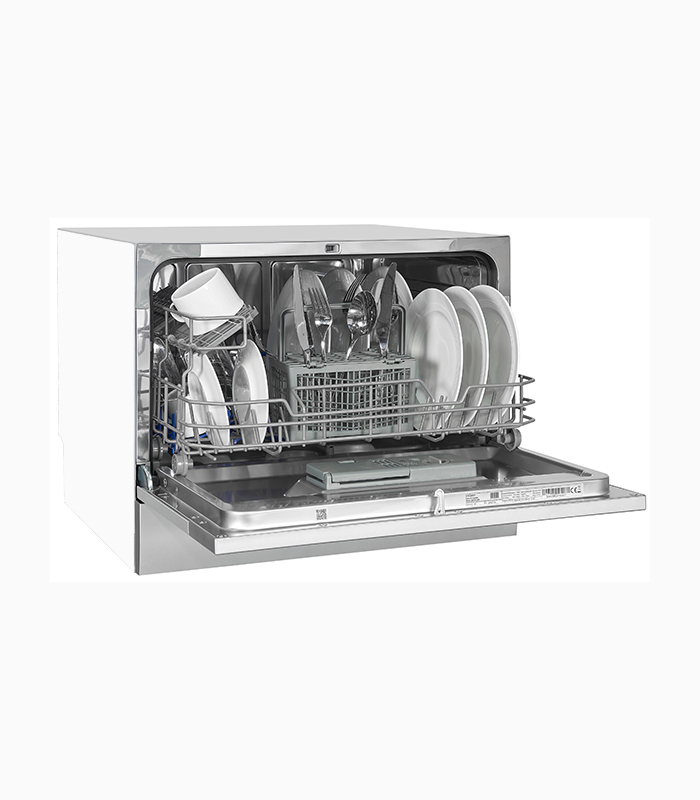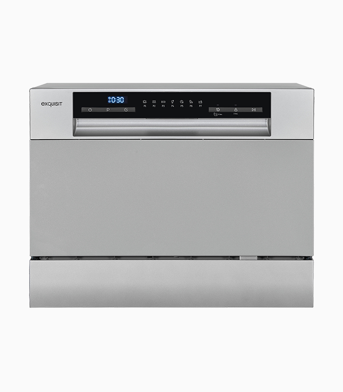 Geschirrspüler, Standgerät, Tischgerät, 6 Maßgedecke, 7 Programme, LED Display, Startzeitvorwahl, Salzmangelanzeige, Wasserverbrauch: 6,5 L/Zyklus, EEK:  D, Silber