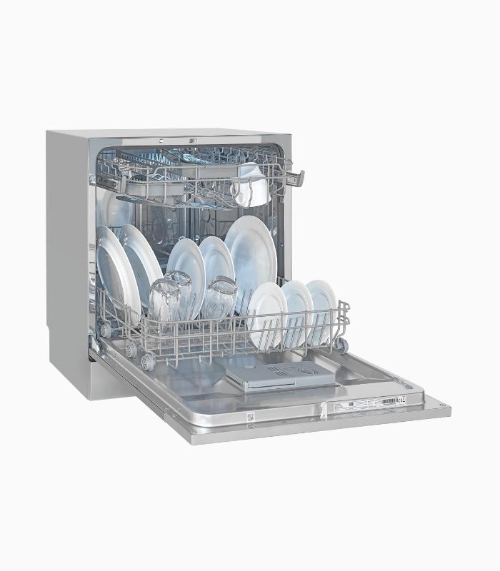 Geschirrspüler, Standgerät, 8 Maßgedecke, 7 Programme, LED Display, Startzeitvorwahl, Salzmangelanzeige, Wasserverbrauch: 8,0 L/Jahr, EEK:  D, Silber
