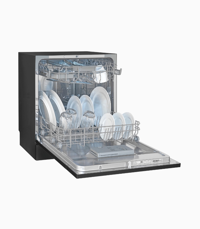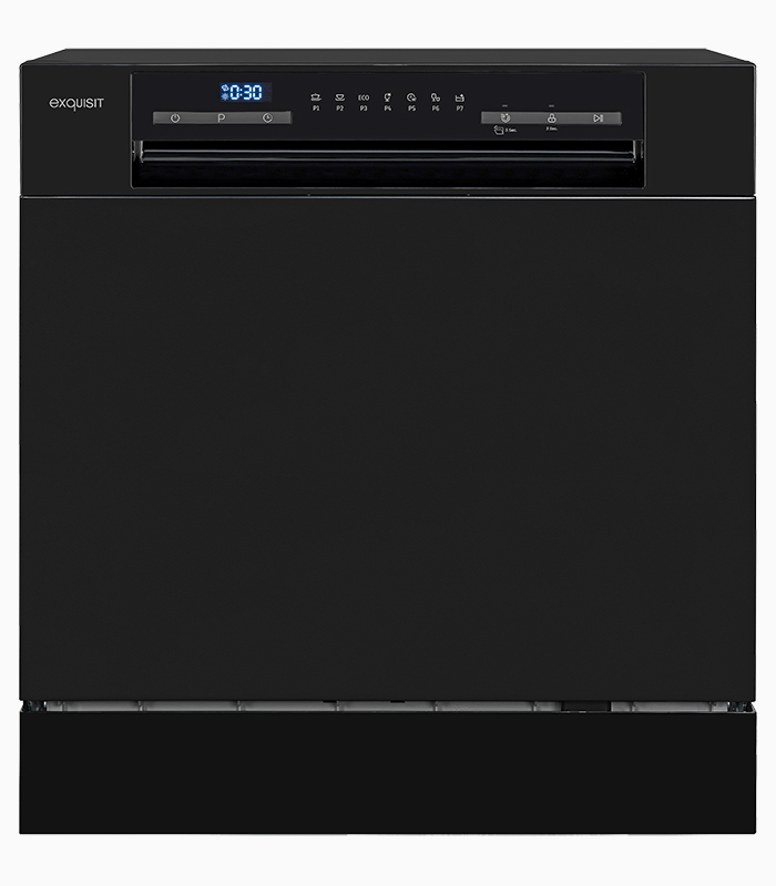 Geschirrspüler, Standgerät, 8 Maßgedecke, 7 Programme, LED Display, Startzeitvorwahl, Salzmangelanzeige, Wasserverbrauch: 8,0 L/Jahr, EEK:  D, Schwarz
