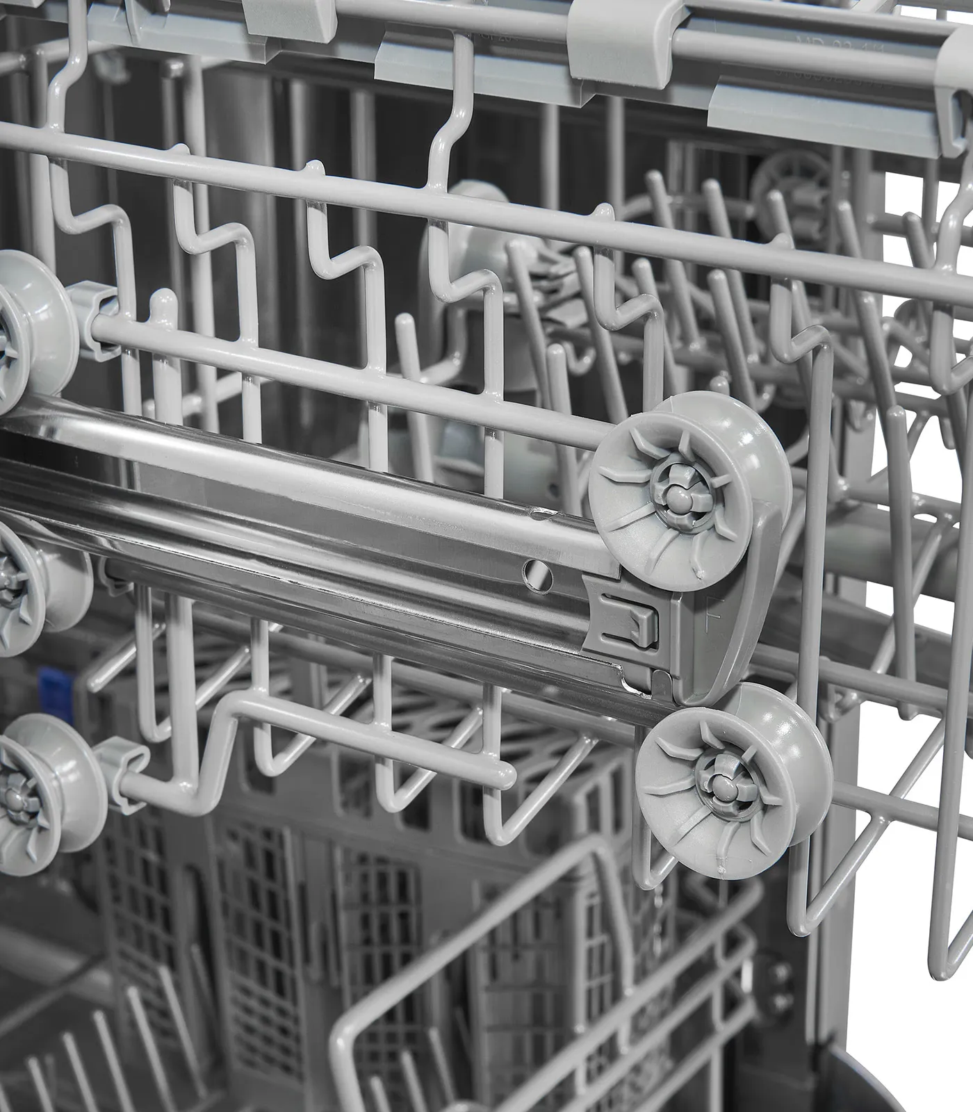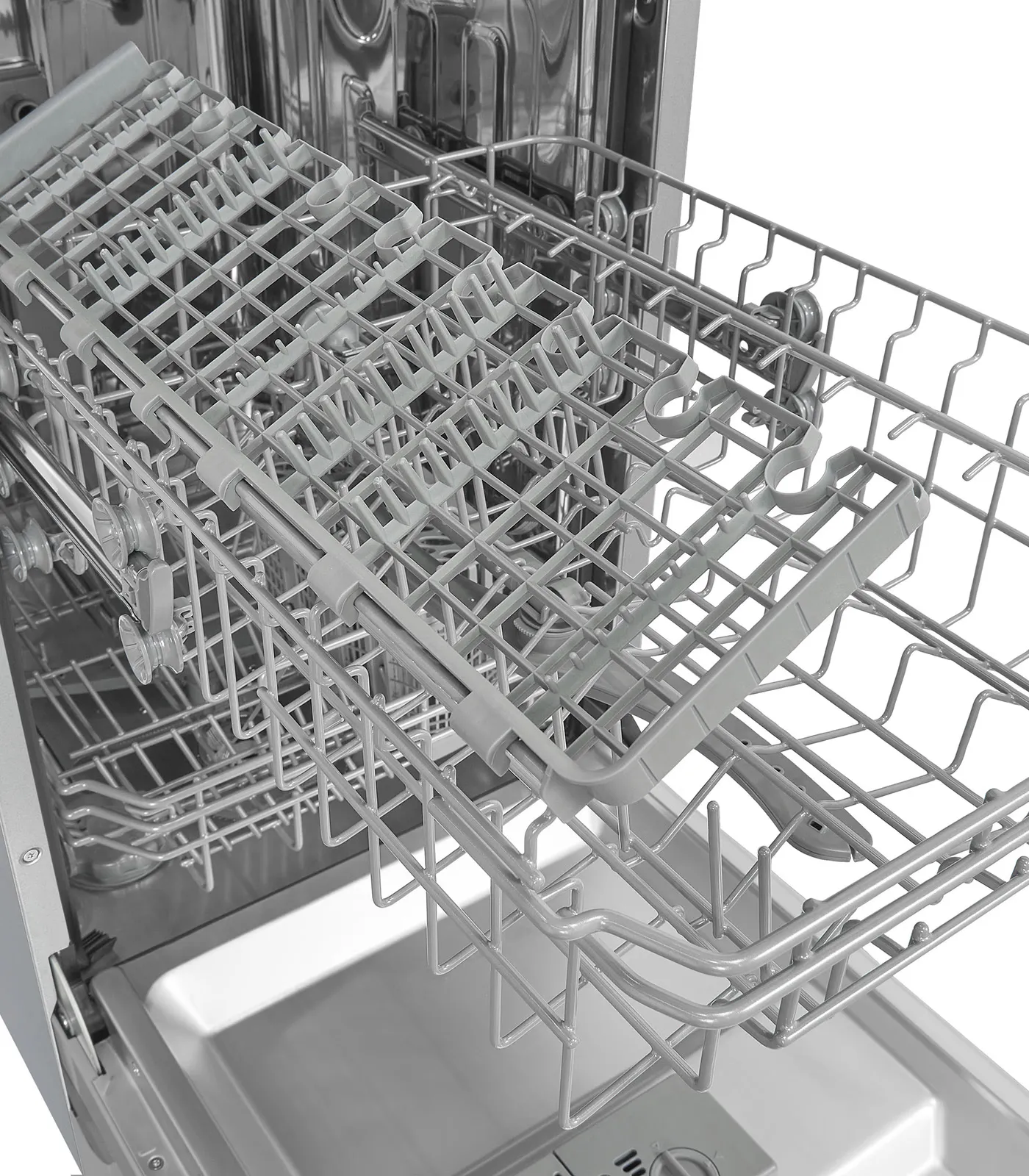Der herausnehmbare Korb bietet Ihnen umfassenden Platz für Ihr Besteck. Das eingebaute Display unterrichtet Sie über den aktuellen Status Ihres Geschirrspülers. Über die Restlaufzeitanzeige wissen Sie fortlaufend wie lange das aktuelle Programm noch läuft. Der Wasserauslaufschutz verhindert, dass bei einem Fehler des Geschirrspülers Wasser austreten kann.