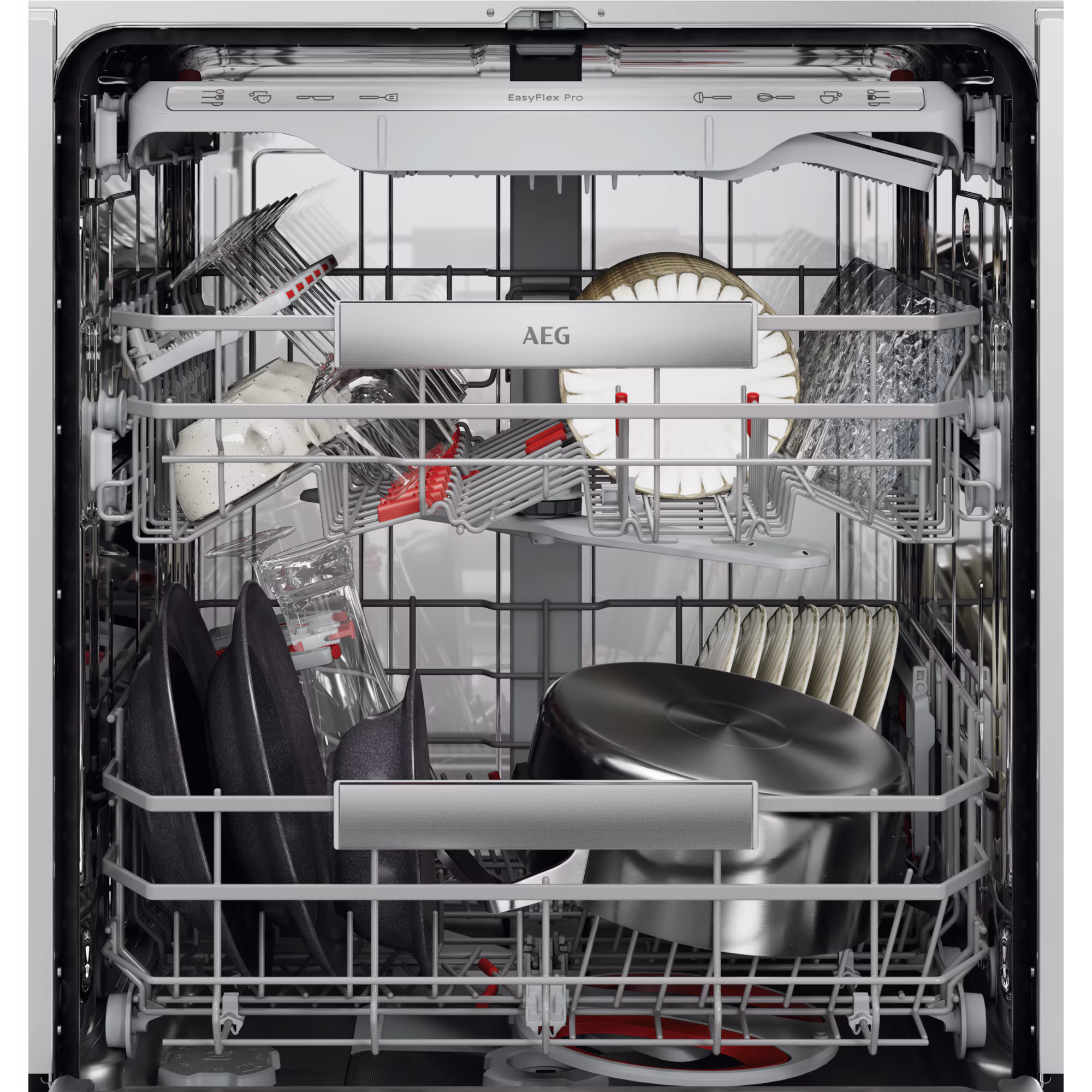 AEG Geschirrspüler der Serie 9000 sind mit multifunktionalen, leichtläufigen Körben und Besteckschubladen sowie speziellen Halterungen für Gläser und Backbleche ausgestattet. Das hocheffiziente Wassersystem entfernt hartnäckige Speiserückstände bei einem geringen Wasserverbrauch von nur 8.4 Litern.