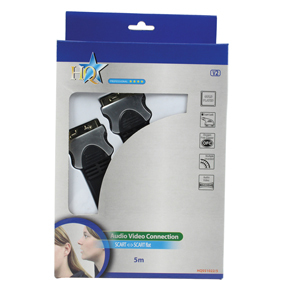 HIGH QUALITY "HOMECINEMA" SCART KABEL 21 polig verschaltetes, flaches Scart Kabel mit 24 Karat vergoldeten Kontakten, vollständig geschirmten OFC-Kabeln und Metallstecker. Für perfekte Bild- und Tonqualität bei 100Hz und 16:9 Fernsehern sind die Audio/Video-Leitungen getrennt geschirmt. Länge: 5 m SPEZIFIKATIONEN: Kabel: Flach Farbe: Schwarz Länge: 5,0 m Stecker: Scart - Scart Vergoldet Scart Lock System EAN-code: 5412810062676