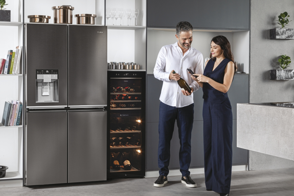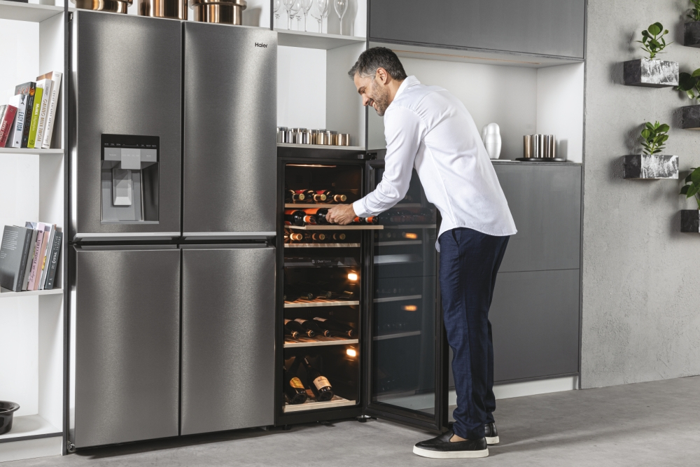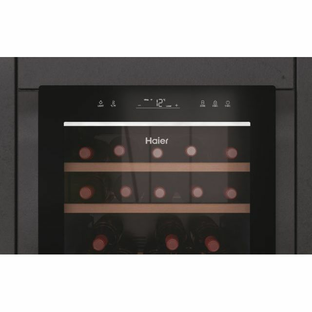 Die warme Farbe der 3D-LEDs im Weinklimaschrank von Haier strahlen Ihre Weine von oben und von den Seiten an und stellen sie in das Rampenlicht, das sie verdienen.
