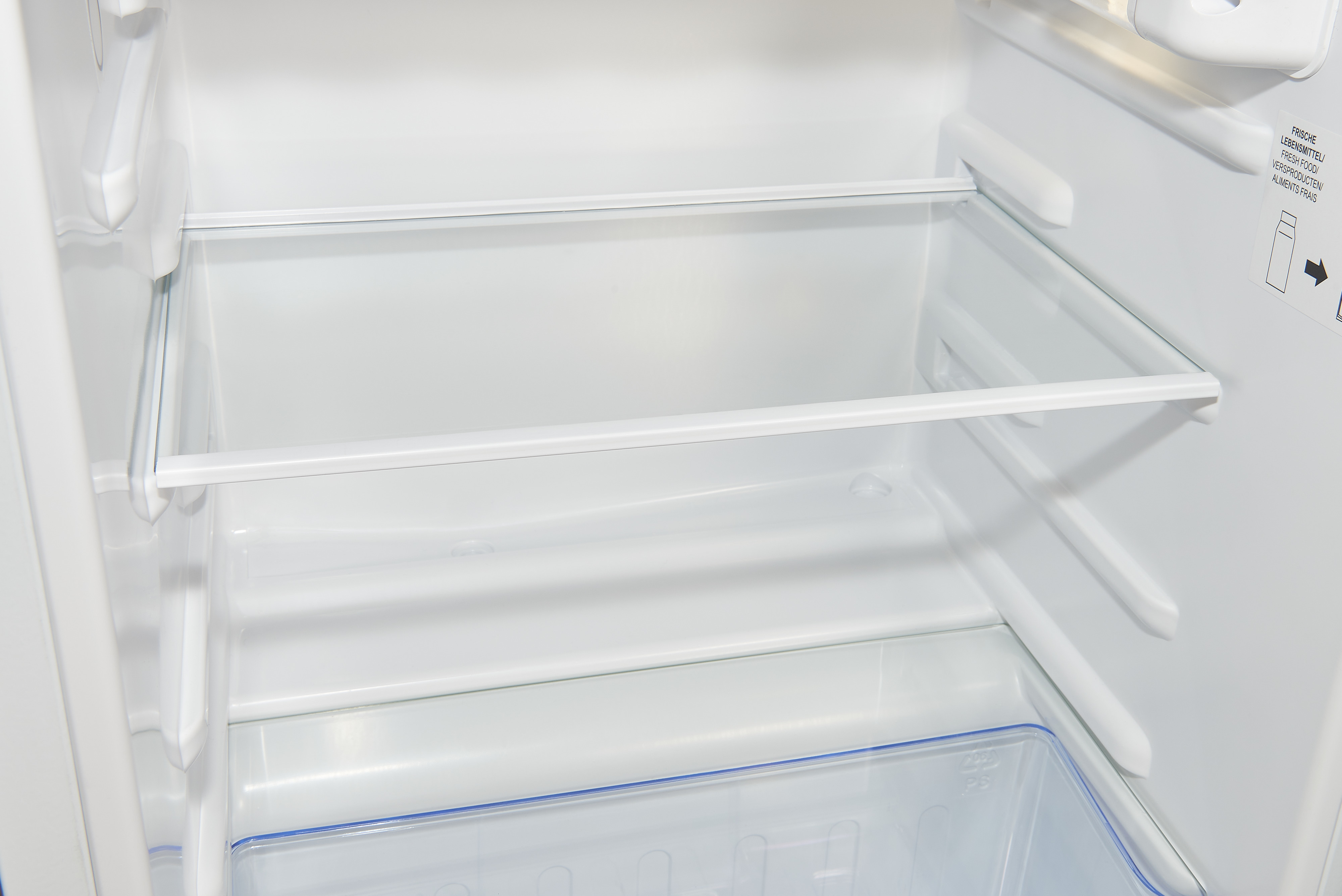 Energieeffizienzklasse (A bis G): E • Energieverbrauch: 84kWh/Jahr • Farbe: weiß • Nutzinhalt: 79l, inkl. Kaltlagerzone • Display: nein • Ausstattung: Gemüsefach, LED-Beleuchtung • Klimaklasse: N/ST • Geräuschentwicklung: 41dB(A) • Luftschallemissionsklasse (A bis D): C • Bauart: Standgerät • Türanschlag: rechts, wechselbar • Einbaumaße (HxBxT): keine • Abmessungen (HxBxT): 835x445x445mm