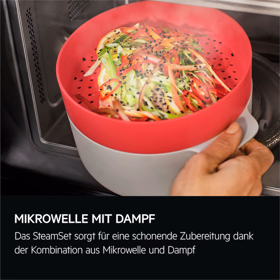 Mit dem SteamSet kannst du dank der Kombination aus Mikrowelle und Dampf deine Lieblingsgerichte schonend und aromatisch zubereiten.