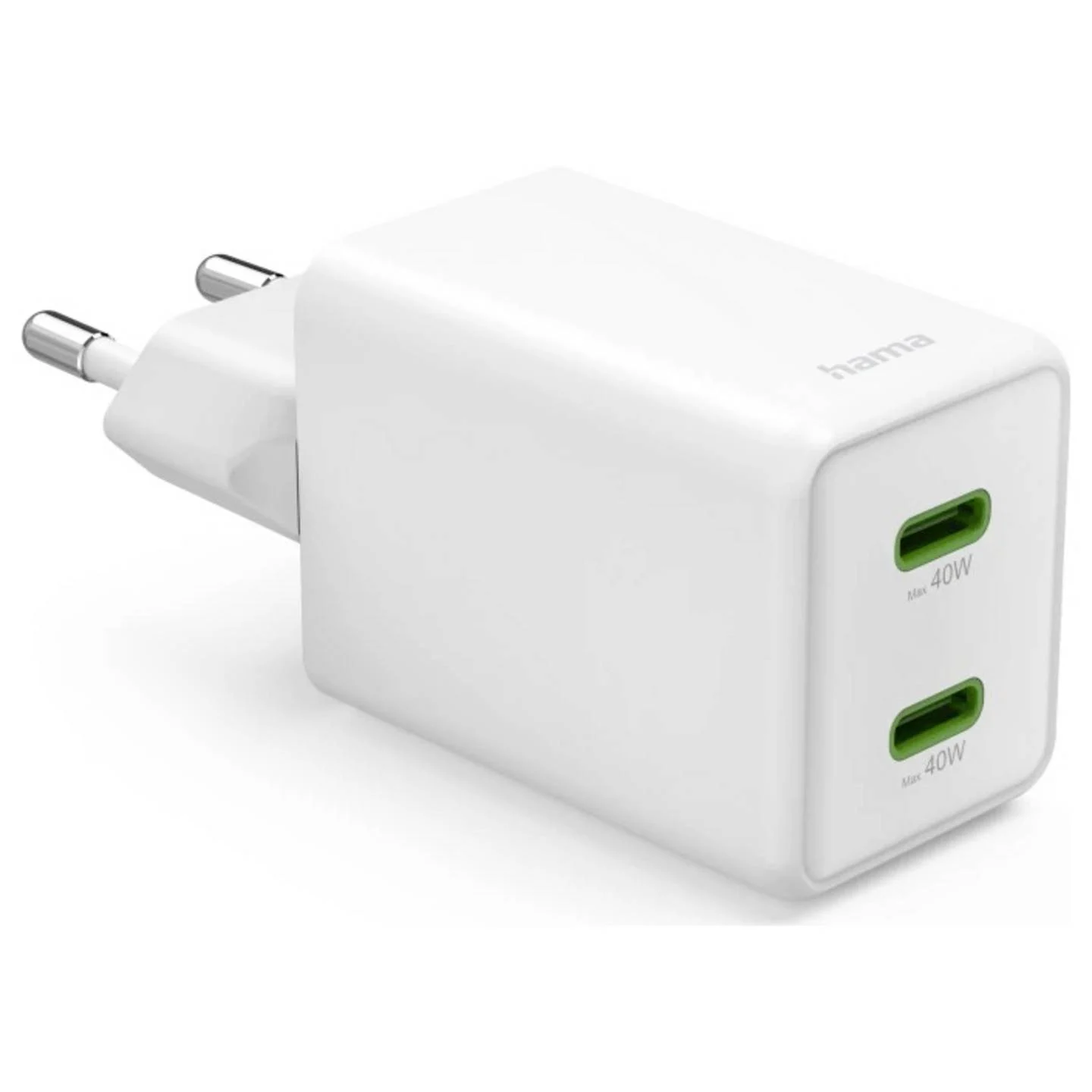Hama Schnellladegerät, GaN, 2x USB-C, Super-Mini-Ladegerät, PD, 40W, weiß