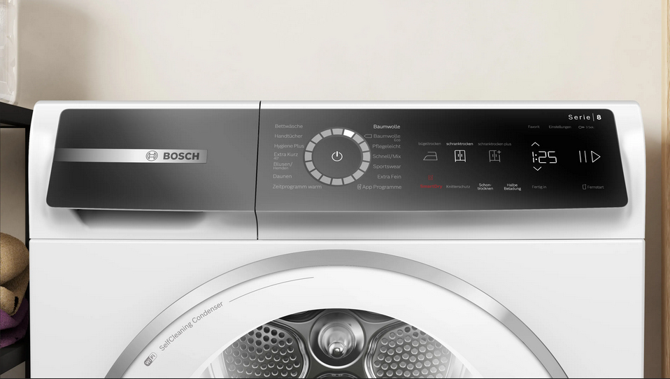 | Bosch-Technologien (Kleiderpflege): | AutoDry, Home Connect, Smart Dry |