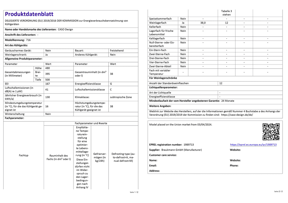 CASO WineExclusive 12 Weinkühler (41 dB)