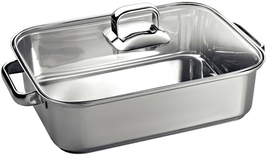 Bräter aus Edelstahl mit Glasdeckel • induktionsgeeignet