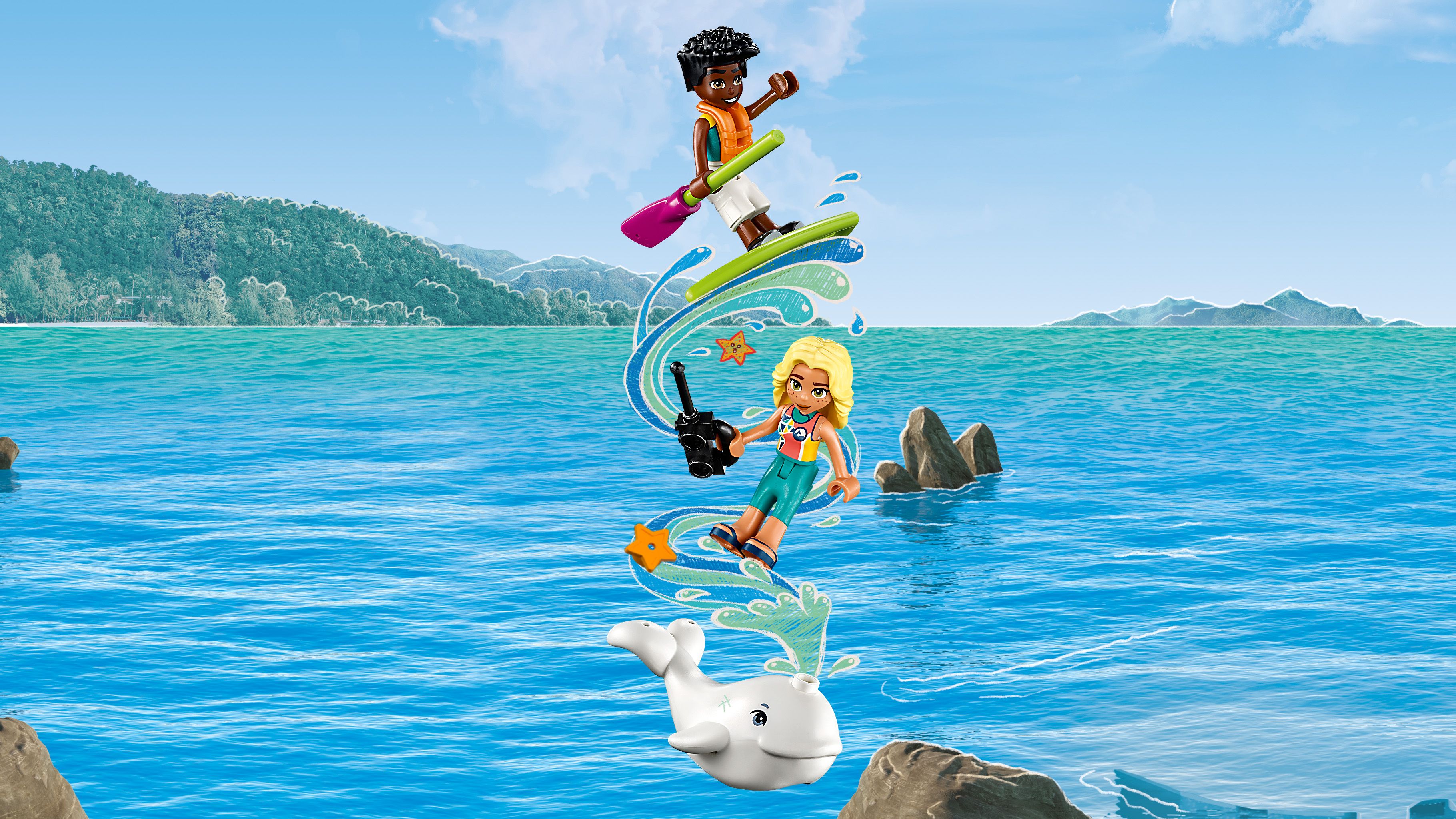 Kindern ab 6 Jahren, die sich gern kreative Geschichten ausdenken und darstellen, hat das LEGO Friends Seerettungsflugzeug (41752) viel zu bieten. Das Bau- und Spielset beinhaltet 2 Spielfiguren, einen Wal und jede Menge Zubehör. Dein Kind kann Zac und seinem großen Vorbild Dia helfen, den festsitzenden Wal zu retten. Das baubare Rettungsflugzeug hat 2 Sitze und einen Frachtraum. Die Strandkulisse besteht aus Zacs Paddelbrett und Teilen, die sich bewegen lassen, damit dein Kind den gefangenen Wal befreien kann.Noch mehr BauspaßFreu dich auf ein leichtes und intuitives Bauabenteuer mit der LEGO Builder App. Die enthaltenen Funktionen lassen dein Kind 3D-Ansichten der Modelle vergrößern und drehen, Sets speichern und seinen Baufortschritt verfolgen. Für weitere Abenteuer und Rettungseinsätze auf dem Meer kann man dieses Set auch mit den separat erhältlichen LEGO Friends Sets 41736 und 41734 kombinieren.Die nächste Generation von Heartlake CityLass dein Kind die neue LEGO Friends Welt mit ihren unterschiedlichen Figuren erkunden und dabei seine eigenen Interessen entdecken.