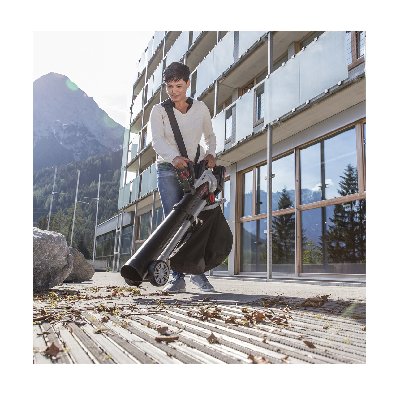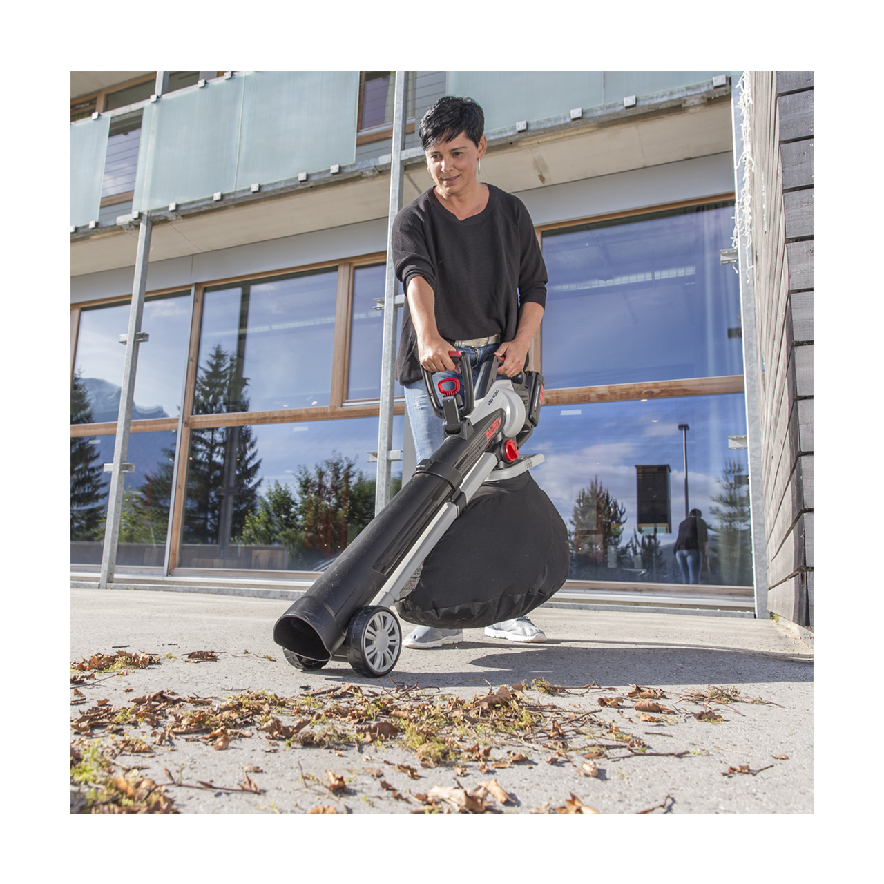 - Blasen und Saugen von Laub mit nur einem Gerät