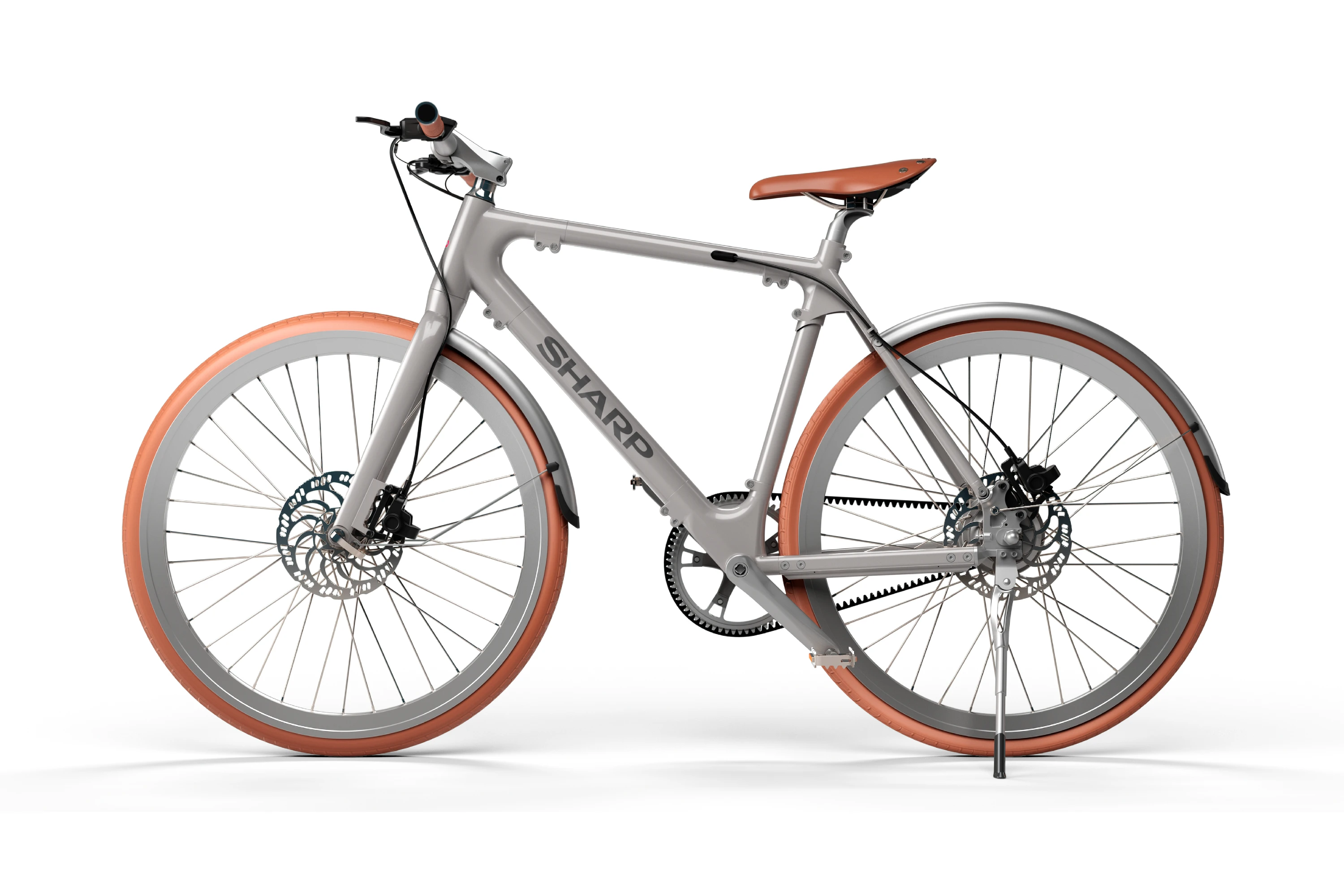 Glänzendes Silber ist Ihr Stil? Prima! Dann ist dieses Sharp eBike Modell genau das Richtige für Sie. Das schlichte Design mit bronzefarbenen Akzenten hebt Sie garantiert von der Masse ab.