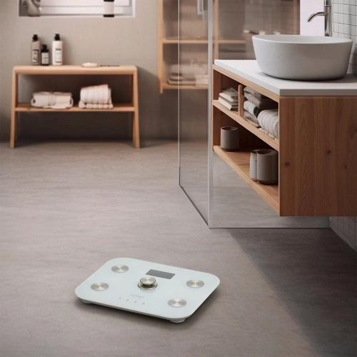 - Körperanalysewaage (BIA) mit exakter Messung von Knochendichte, Körperwasser-, Körperfett-, und Muskelanteil und den BMI für die optimale Erfolgskontrolle