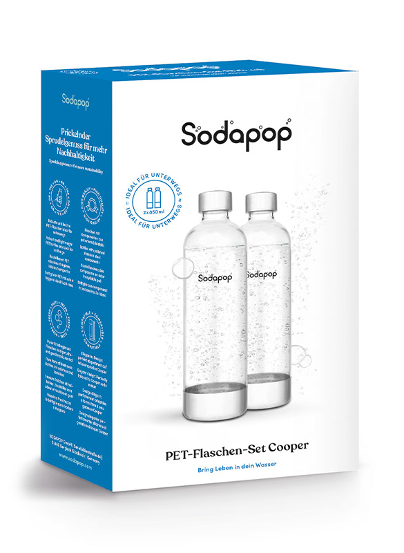 Sodapop Cooper PET Flaschen Set mit Edelstahl Deckel (2Stk je 850ml) (Grau, Transparent)