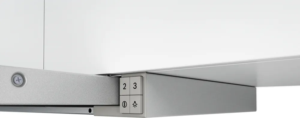 DFT93AC50 Flachschirmhaube, 90 cm, Silber. Die Flachschirmhaube verschwindet praktisch in deinem Oberschrank und sorgt so für eine elegante Küchenfront.