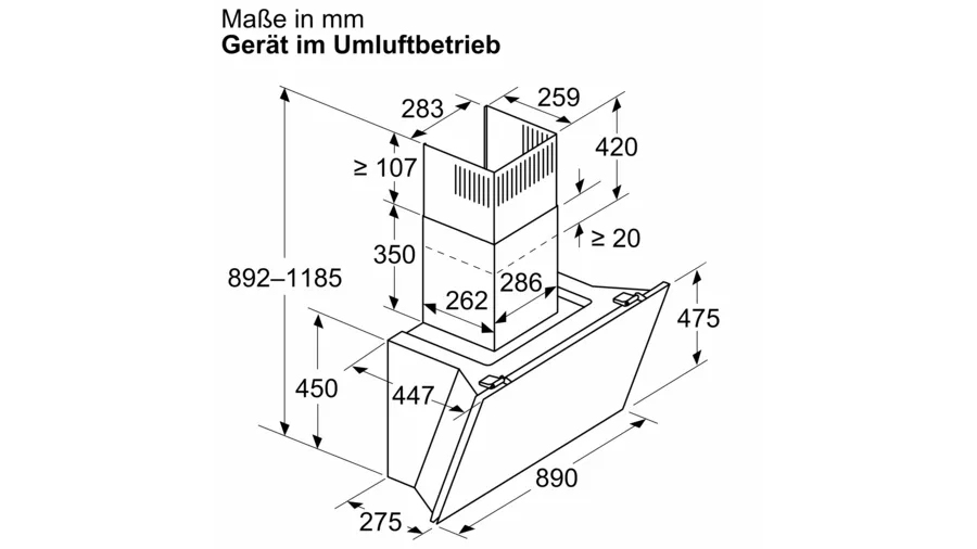 DWK91LT60 Wandesse, 90 cm, Klarglas schwarz bedruckt