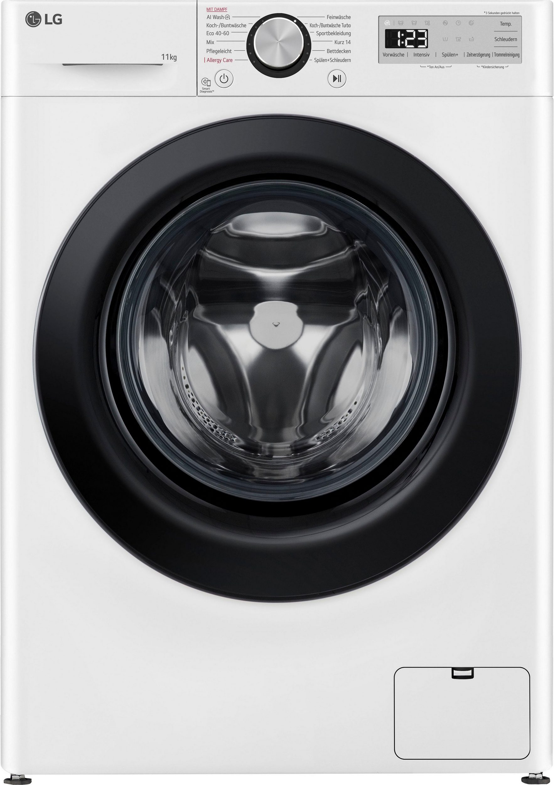 F4WR4911P Waschmaschine mit 11 kg Kapazität | EEK A | 1.400 U./Min. | Weiß mit schwarzem Bullaugenring