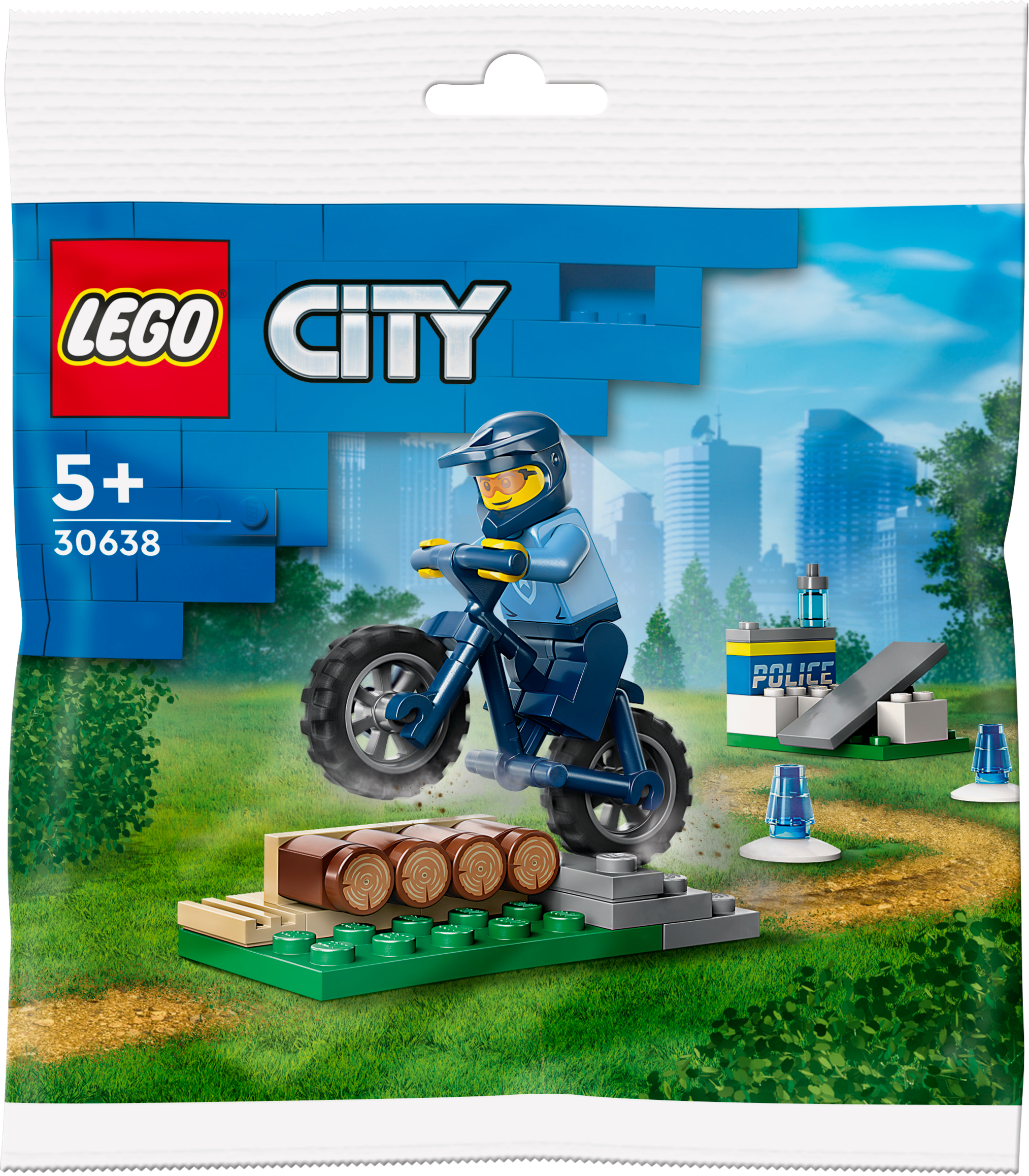 Fahrradtraining der Polizei (30638). Dein Kind kann seine LEGO® Fahrkünste mit diesem faszinierenden Spielset demonstrieren. Für das Fahrradtraining der Polizei sind ein Fahrrad, eine Geländekulisse, eine Wippe, Verkehrshütchen und eine Fahrradfahrer-Minifigur enthalten.