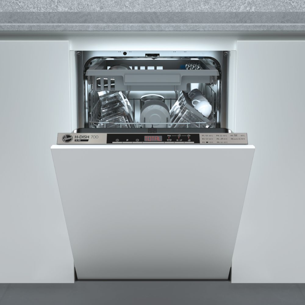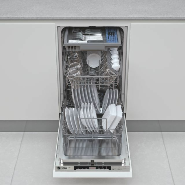 Hoover Einbaugeschirrspüler HDIH2T1145 (32901514), WiFi Funktion, Selbstreinigendes dreifach Filtersystem, Automatische Türöffnung, 2 Geschirrschubladen, Höhenverstellbarer Oberkorb mit Easy-Click, Beladungssensor, Aquaprotect
