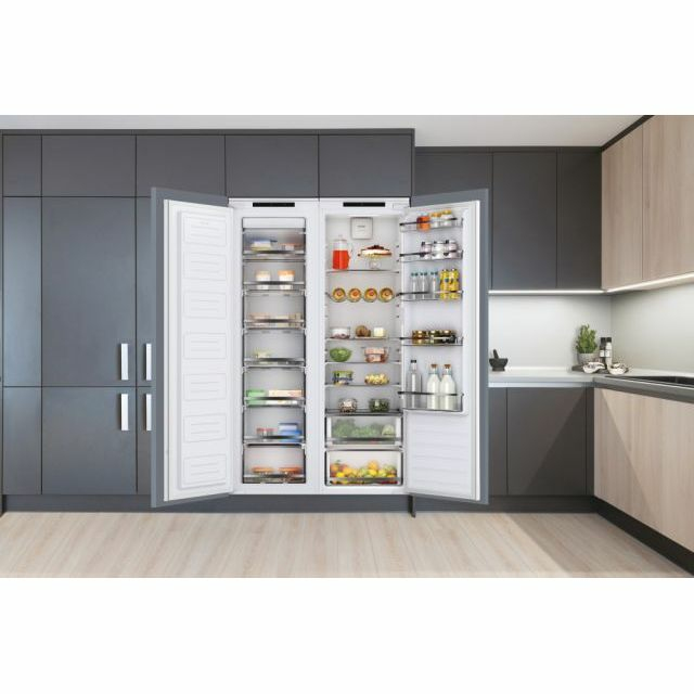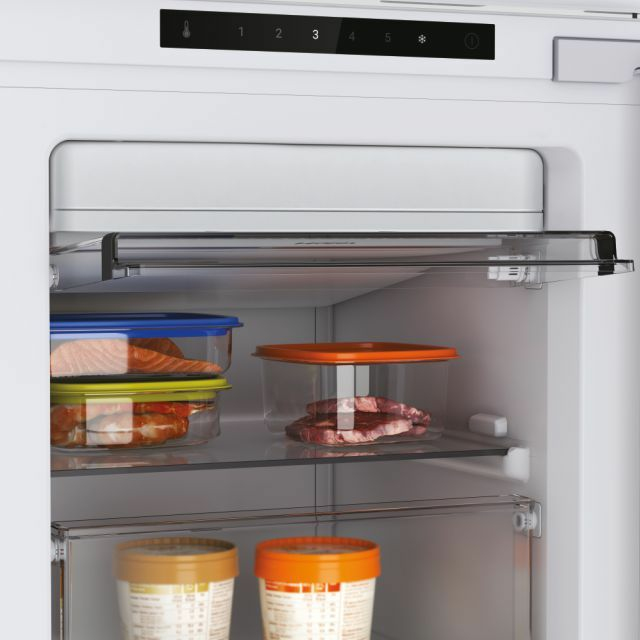 Dieser Gefrierschrank der Energieeffizienzklasse F, der dem neuen Energielabel entspricht und mit der Klasse G vergleichbar ist, reduziert den Verbrauch um bis zu 20 %, spart Energie und Geld und schont die Umwelt.