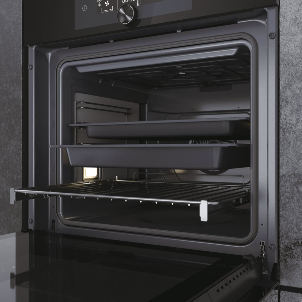 Die Teleskopführungen wurden so entwickelt, dass das Herausziehen der Backbleche besonders einfach ist. So können Sie jederzeit den Fortschritt des Garvorgangs überprüfen und die Backbleche austauschen, ohne die Tür länger als nötig offen zu halten. Die einfache Handhabung führt zu einem geringeren Wärmeverlust und damit zu einer höheren Effizienz.