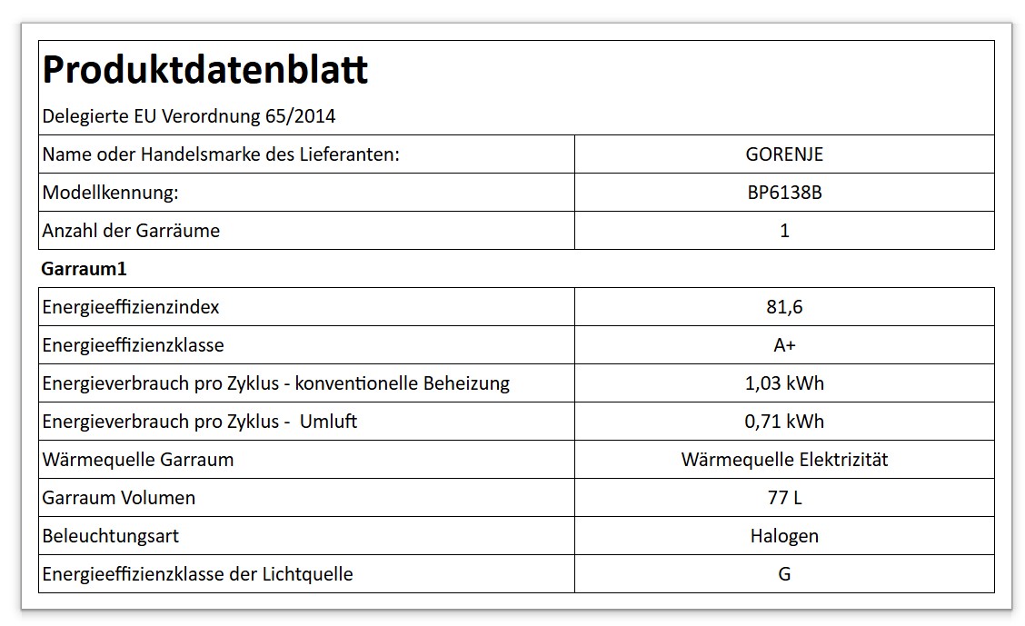 - Energieeffizienz: Achten Sie auf das Energielabel und wählen Sie einen Backofen mit einer hohen Energieeffizienzklasse, um Energie und Kosten zu sparen. Bedenken Sie, dass energieeffiziente Modelle zwar möglicherweise etwas teurer sind, sich aber langfristig durch niedrigere Betriebskosten auszahlen können.