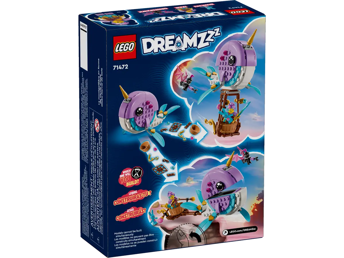 Mit Izzies Narwal-Heißluftballon (71472) können Kinder ab 7 Jahren in die fantastische LEGO® DREAMZzz™ Welt eintauchen. Das Bauset basiert auf der spannenden TV-Serie. Dein Kind kann der LEGO DREAMZzz Heldin Izzie helfen, ihren Plüschhasen Bunchu aus den Fängen eines Albtraumschurken zu befreien, indem es ein Narwal-Fantasiewesen baut. Dieses coole LEGO Spielzeug bietet 2 Bauoptionen, damit dein Kind fantasievolle eigene Abenteuer darstellen kann. Jede Menge Funktionen laden zum Spielen ein, unter anderem ein aufklappbares Maul, in das zum Beispiel kleine Zierelemente und Luftballons hineinpassen. Dein Kind kann den Wal zu einem Heißluftballon umbauen oder ihn vor ebenso schnelles wie wendiges Kutschenboot spannen. LEGO DREAMZzz Charaktere, unter anderem die Heldin Izzie und ein Albgnom, erwecken das Set zum Leben. Auch der Plüschhase Bunchu ist als kleine Figur enthalten, damit dein Kind die gesamte Handlung nachstellen und eigene Traummodelle erschaffen kann.