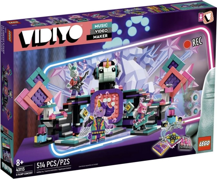 Ermögliche deinem Kind Zugang zur Welt der Musikvideo-Erstellung und lass sie mit dem LEGO VIDIYO K-Pawp Concert (43113) eigene K-Pawp-Videos drehen. Lade dafür die kostenlose VIDIYO App herunter, um die 3 Minifiguren zu scannen und tanzen zu lassen. Benutze dann die App, um das LEGO-Modell zu scannen. Jetzt wird es zur Bühne im Musikvideo deines Kindes. Kinder werden die kleinen Challenges beim Drehen ihrer eigenen Musikvideos lieben, die sie dann anderen, kleinen „Musikvideoproduzenten“ in dem sicheren, sozialen Feed zeigen können.Die Show beginnt!Die K-Pawp Bühne bietet stundenlangen Spielspaß, sowohl mit dem Modell als auch mit der VIDIYO App. Kinder können die Köpfe, Lautsprecher und Strahler an dem Modell mit Begeisterung drehen, um die Kulisse und Beleuchtung in den Musikvideos zu verändern.Kreative MusikerlebnisseLEGO VIDIYO Sets bieten ein sicheres Online-Spielerlebnis und lassen Kinder tolle, eigene Musikvideos drehen. Coole Figuren, Songs, Tanzbewegungen und tolle Effekte lassen Kinder mit jedem Video kreativer werden.