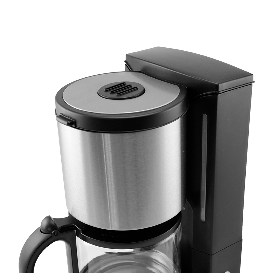 Kaffeemaschine in schwarz/Edelstahldesign 4 bis 10 Tassen Kapazität 1,25 Liter Glaskanne 1080 Watt Leistung, Warmhalteplatte Filtereinsatz herausnehmbar Tropfstopp & Trockenlaufschutz & Abschaltautomatik