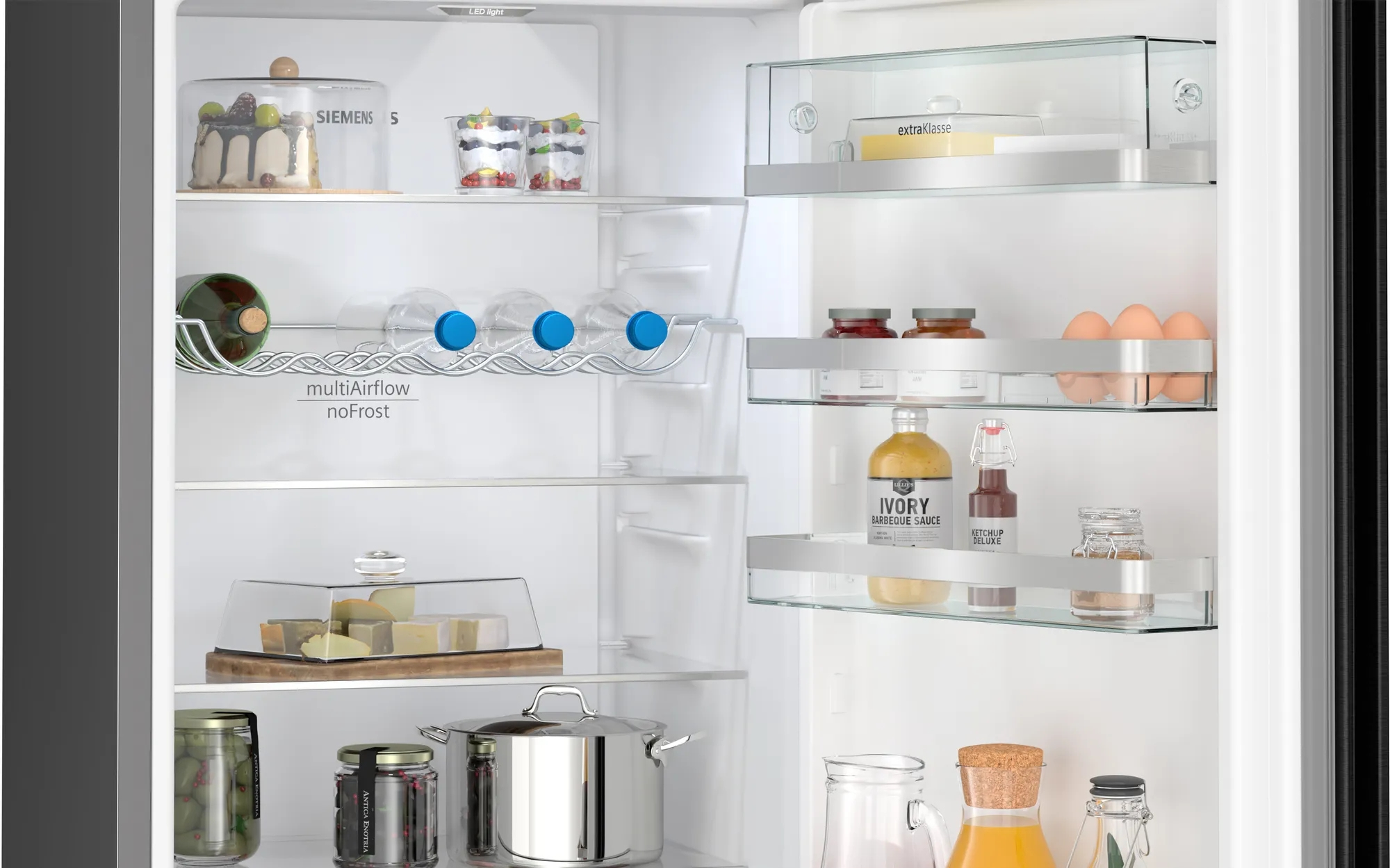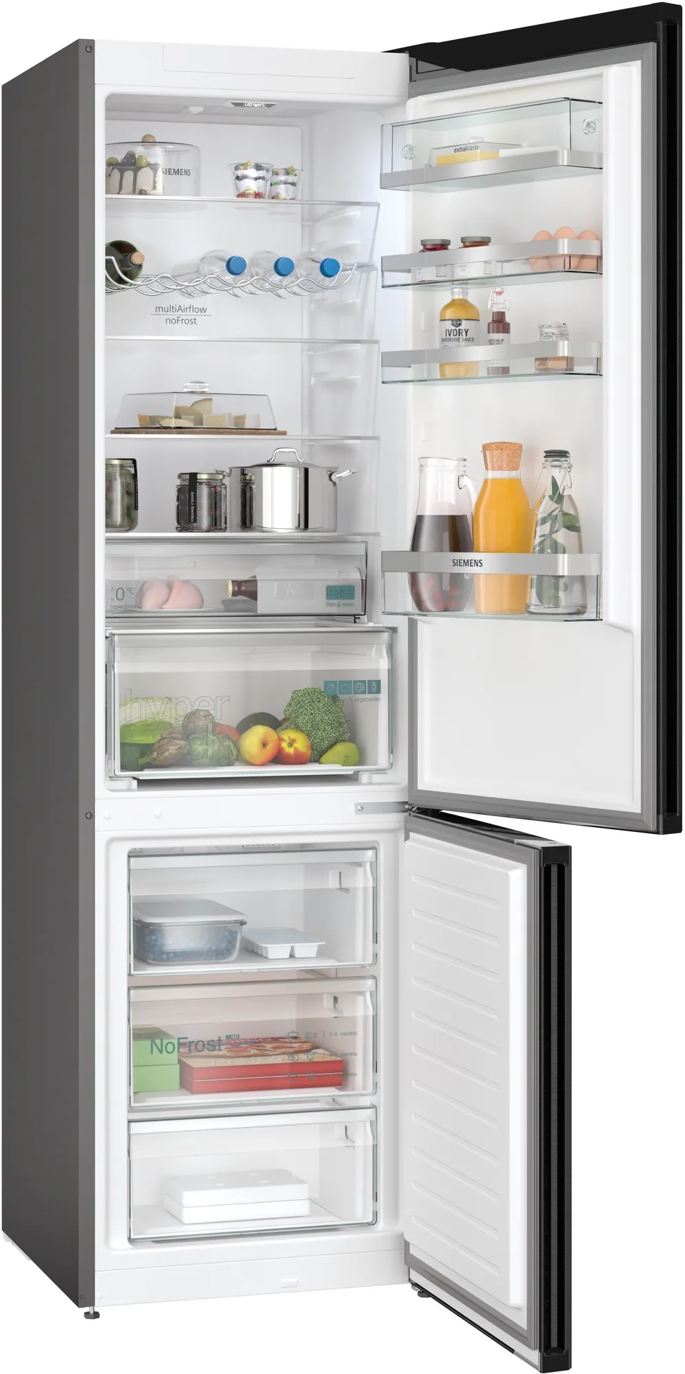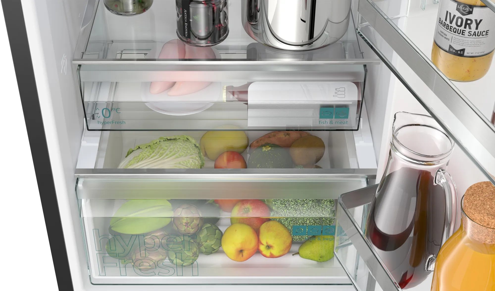 - hyperFresh – Mehr Platz für Obst und Gemüse. Und perfekt gekühlte Luft für Fisch und Fleisch