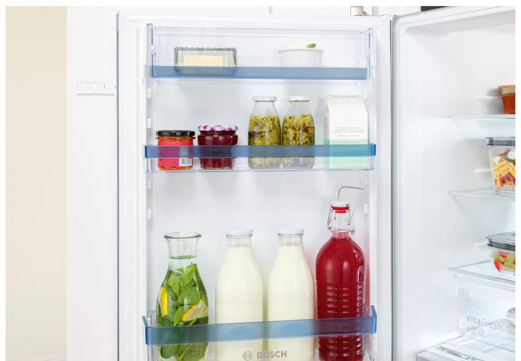 Energieeffizienzklasse (A bis G): D • Energieverbrauch: 115kWh/Jahr • Farbe: weiß • Nutzinhalt gesamt: 119l • Nutzinhalt Kühlzone: 104l • Nutzinhalt Gefrierfach: 15l • Sternekennzeichnung: 4 Gefriervermögen in 24h: 3.00kg • Lagerzeit bei Störung: 11h • Display: ja • Ausstattung: Gemüsefach (VitaFresh), Schnellkühlen, dynamische Kühlung, LED-Beleuchtung, Türalarm • Klimaklasse: SN/N/ST • Geräuschentwicklung: 35dB(A) • Luftschallemissionsklasse (A bis D): B • Bauart: integrierbar (Flachscharnier) • Türanschlag: rechts, wechselbar • Einbaumaße (HxBxT): 880x560x550mm • Abmessungen (HxBxT): 874x558x548mm