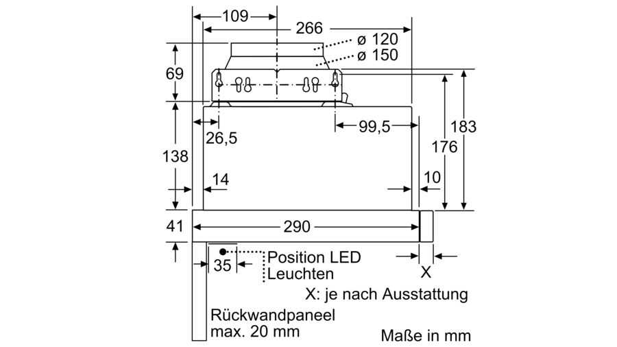 | Mindestabstand vom elektrischen Kochfeld: | 430 |