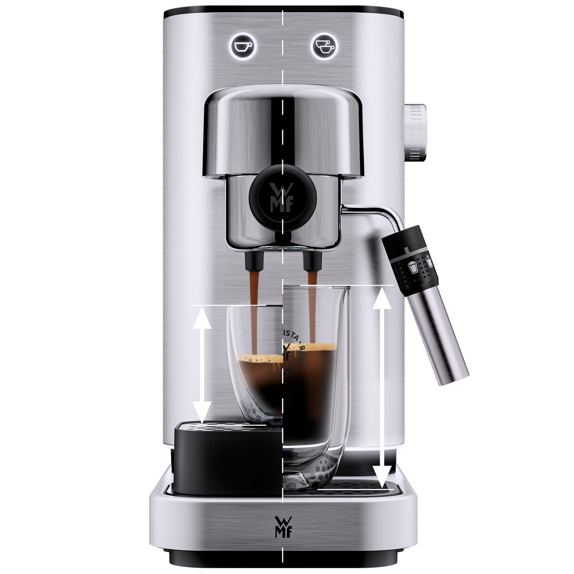 Kompakt und gleichzeitig außergewöhnlich elegant, leistungsstark und dabei kinderleicht zu bedienen – die WMF Lumero Espressomaschine verzaubert Kaffee-Enthusiasten mit stilvollem Äußeren und vollmundigem Espresso mit perfekter Crema. Das Vorheizen dauert dank des leistungsstarken Thermoblock Heizsystems nicht einmal eine Minute und die Maschine ist bereit, mittels der intutiven 2-Tasten-Bedienung Espresso in Barista-Qualität zu brühen. Die integrierte Milchschaumdüse sorgt dazu in Sekundenschnelle für jede weitere, gewünschte Espresso-Variante - vom seidig-sanften Macchiato bis zum unwiderstehlich-cremigen Cappuccino.