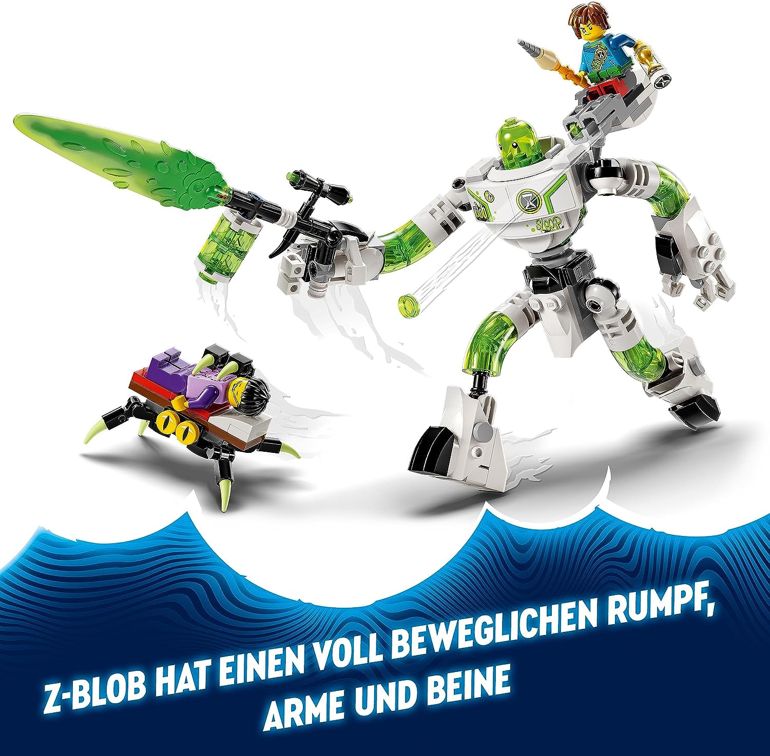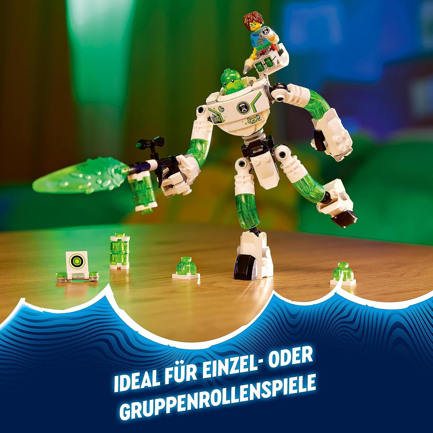 LEGO DREAMZzz Mateo und Roboter Z-Blob (71454) schickt Kinder auf spannende Abenteuer in der Traumwelt. Das Bau- und Spielset basiert auf der packenden Handlung der TV-Serie DREAMZzz und lässt dein Kind Z-Blob in einen Roboter verwandeln, der Mateo hilft, den entführten Jayden aus den Fängen des Albtraummonsters zu befreien.1 Set, 2 BaumöglichkeitenDer große Roboter Z-Blob ist voll gelenkig und kann Oberkörper, Arme und Beine bewegen. Dein Kind kann Z-Blob mit Blastern an Händen und Schultern oder mit einem Raketenrucksack und einem Helm ausstatten. Das bietet fantasievollen Kinder doppelten Bau- und Spielspaß.Minifiguren erwecken das Actionspektakel zum LebenDas Set beinhaltet die detailgetreuen Minifiguren Mateo und Jayden. Für die beiden sind ein Gürtel, ein Bleistiftstab und eine Sanduhr enthalten. Dieses Zubehör ist für die Figuren aus der TV-Serie sehr wichtig.