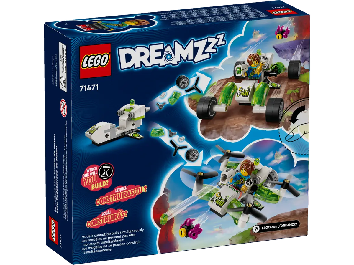 Mit Mateos Geländeflitzer (71471) können Kinder ab 7 Jahren in die LEGO® DREAMZzz™ Welt brausen. Das Set basiert auf der spannenden TV-Serie. Dein Kind kann den beiden Helden Mateo und Z-Blob helfen, die magische Sanduhr zurückzuholen, indem es entweder einen Strandbuggy oder einen Quadrokopter baut. Dieses Actionspielzeug bietet 2 faszinierende Bauoptionen und lässt Kinder besonders fantasievoll spielen und eigene Abenteuer darstellen. Als Strandbuggy verfügt der Geländeflitzer über drehende Räder, und als Quadrokopter ist er ein kompaktes Fluggerät mit megastarken Hecktriebwerken. Dieses Set wird durch LEGO DREAMZzz Charaktere zum Leben erweckt, unter anderem durch die detailreiche Minifigur Mateo mit Shooter. Auch ein Albgnom und Mateosglibbriger Gefährte Z-Blob sind enthalten, damit Kinder kreativ spielen und ihre eigenen Traumabenteuer darstellen können.