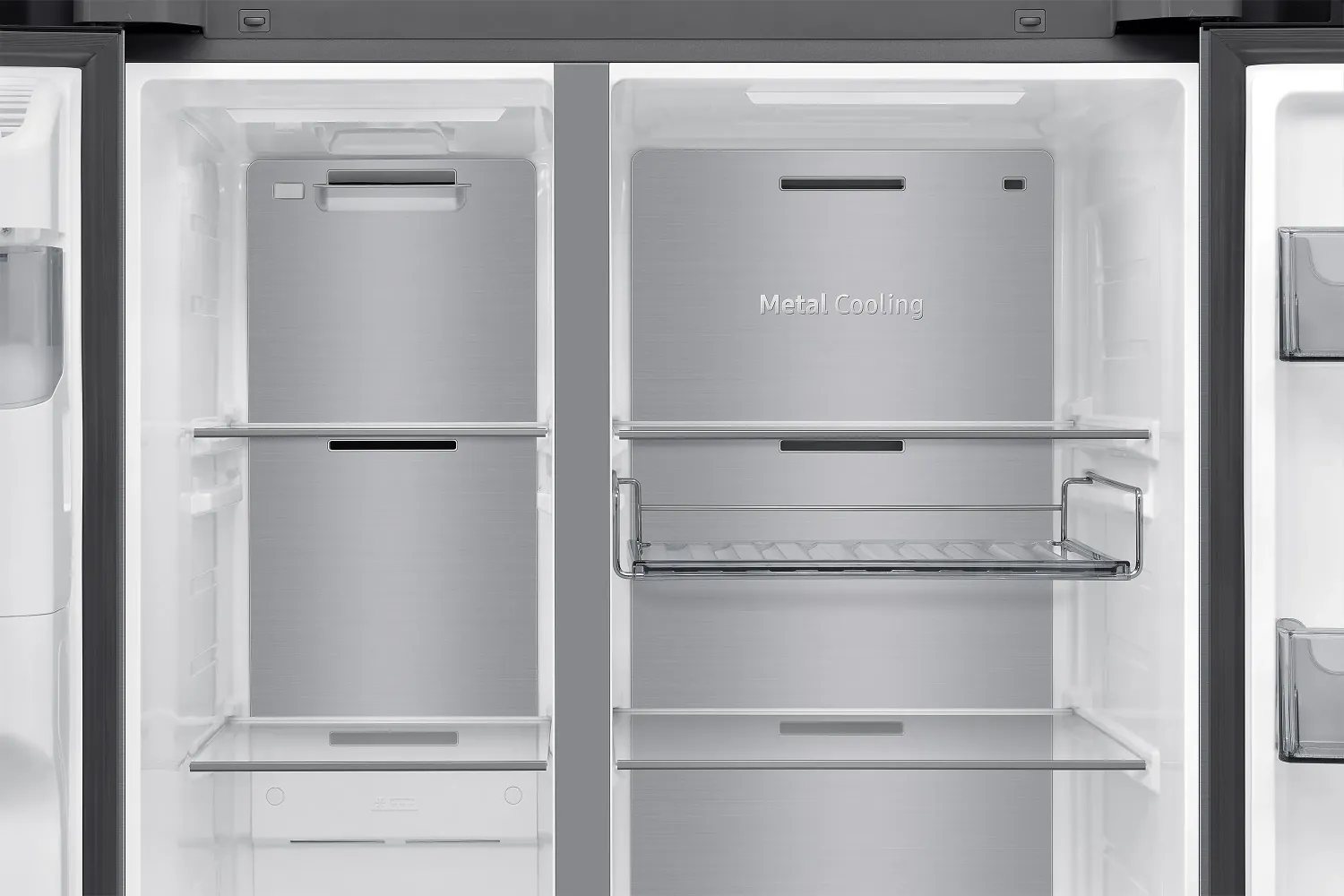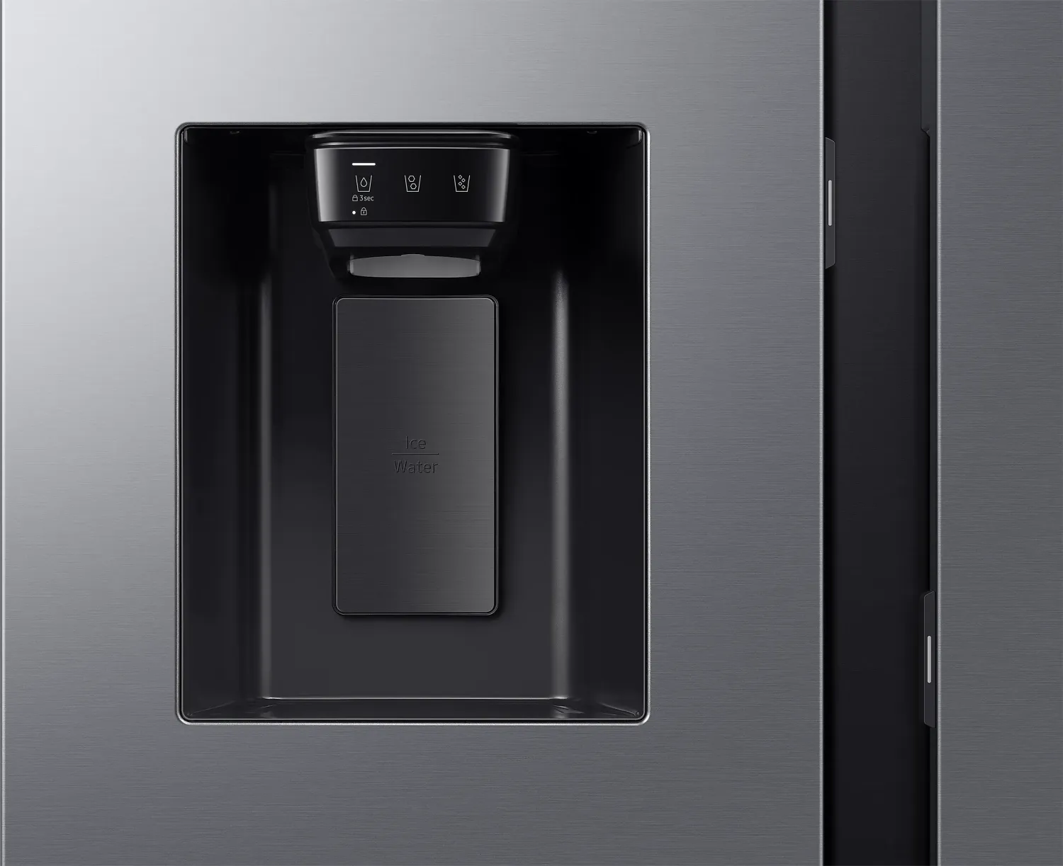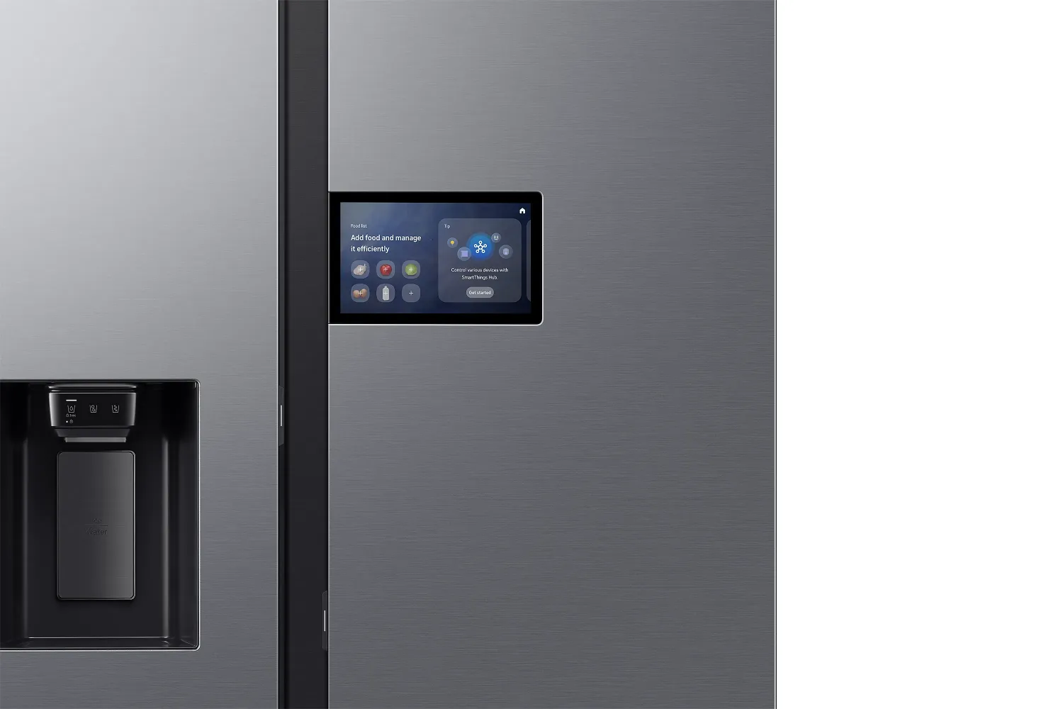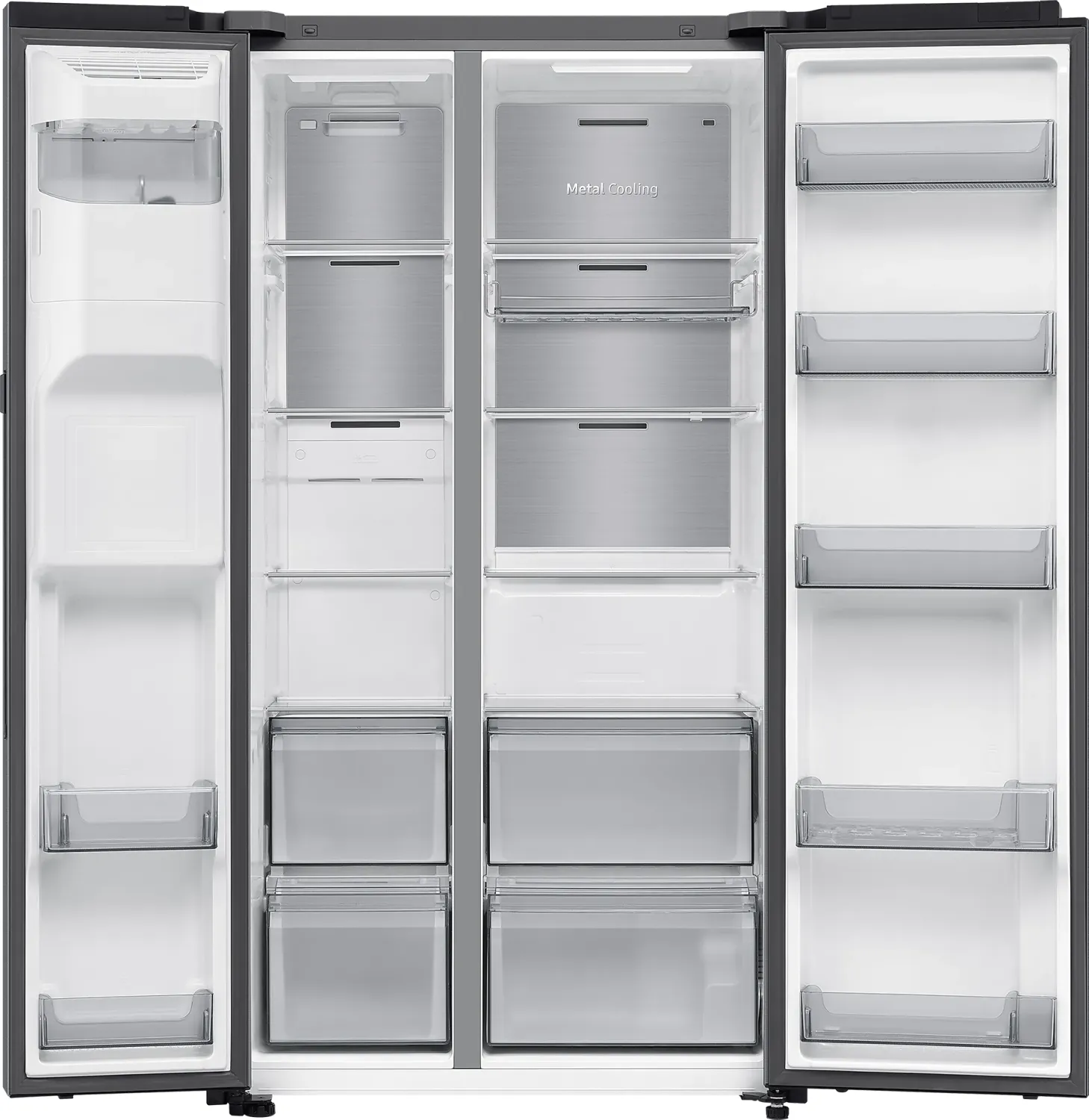 SIDE BY SIDE - Bauart: Standgerät • Energieeffizienzklasse: D (A bis G) • Energieverbrauch: 279kWh/Jahr • Frontfarbe: edelstahl (inox-look) • Seitenfarbe: grau • Nutzinhalt Kühlzone: 401l • Nutzinhalt Gefrierzone: 220l • Nutzinhalt gesamt: 621l • Sternekennzeichnung: 4 • Gefriervermögen in 24h: 13.00kg • Display: Touchscreen • Besonderheiten: Gemüsefach, NoFrost, Schnellkühlen (Power Cool), Schnellgefrieren (Power Freeze), dynamische Kühlung (All-Around Cooling), LED-Beleuchtung, Flaschenablage (Rack & Shelf), griffloses Öffnen (Auto Open Door), Türalarm, Urlaubsschaltung, Wasser- und Eiswürfelspender mit Crushed-Ice-Funktion (Festwasseranschluss) • Smart Home: App-Steuerung (Wi-Fi (WLAN), Samsung SmartThings), Sprachassistent (Samsung Bixby) • Klimaklasse: ST • Geräuschentwicklung: 36dB(A) • Luftschallemissionsklasse: C (A bis D) • Türsystem: Mehrfachtürsystem (Türanschlag links/rechts) • Abmessungen: 912x1780x726mm (BxHxT)