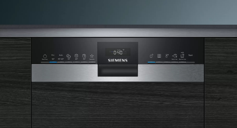 SR53HS64KE (SIEMENS ELEKTROGERÄTE) B-Ware • Energieeffizienzklasse (A bis G): E • Farbe: edelstahl, schwarz (Blende) • Programmanzahl: 6 • Programme: Eco 50°C, Auto 45-65°C, Intensiv 70°C, 1h 65°C, Schnell 45°C, Favorit • Zusatzoptionen: Vorspülen, intensiveZone, hygienePlus, varioSpeed Plus • Display: ja • Ausstattung: Restlaufzeitanzeige, Startzeitvorwahl 24h, Nachfüllanzeige für Salz und Klarspüler, Beladungserkennung, Besteckkorb, optionaler Warmwasseranschluss, App-Steuerung (Home Connect, WLAN), Abschaltautomatik (AutoPowerOff), Maschinenpflege-Programm • Sicherheit: Kindersicherung, AquaStop • Geräuschentwicklung: 45dB(A) • Luftschallemissionsklasse (A bis D): C • Energieverbrauch: 70kWh/100 Zyklen • Wasserverbrauch: 8.5l/Zyklus • Dauer Eco-Programm: 3h 40min • Bauart: integrierbar • Fassungsvermögen: 9 Maßgedecke • Breite: 45cm (Normbreite) • Höhe: 81.5cm • Tiefe: 55cm (Nischentiefe) (Gerät in Ordnung, ohne Verpackung)