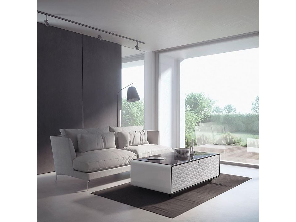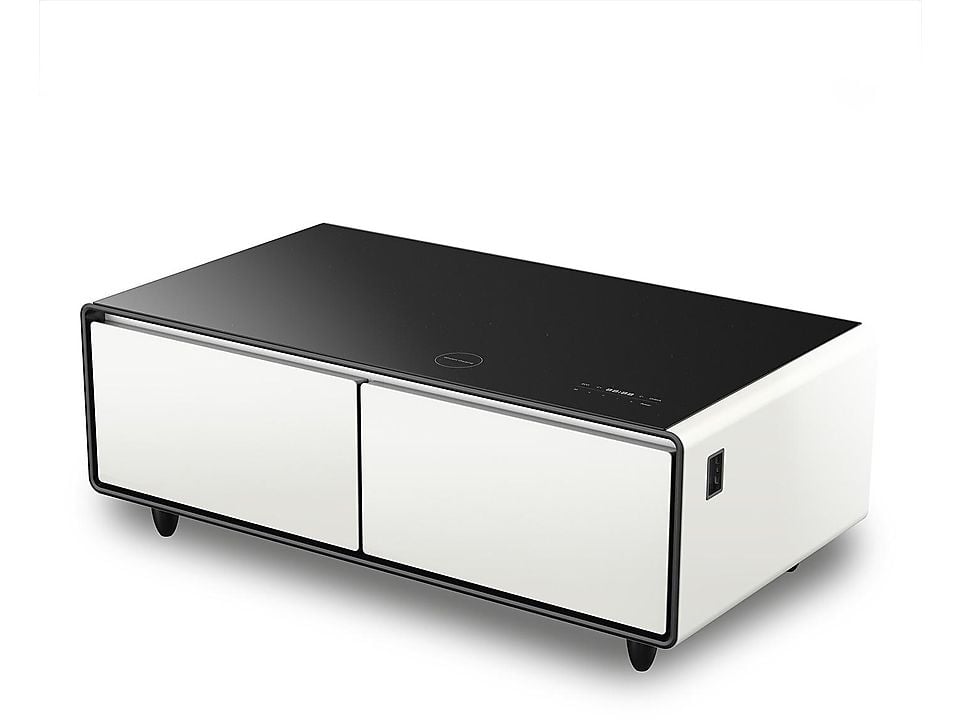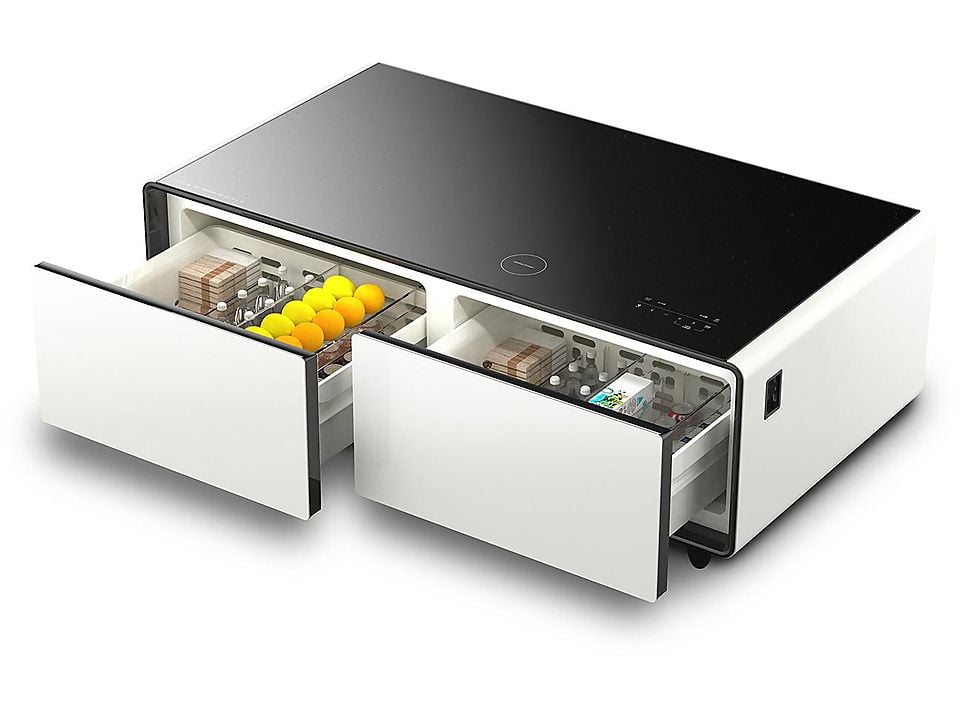 Bluetooth, USB-Anschluss, Oberfläche: Glas, 2 Schubladen, Gesamtvolumen: 135 Liter (70 Liter linke Kühlzone / 65 Liter rechte Kühlzone ), Kühltechnik: Kompressor Loungetisch mit Kühlfächern, integrierten Musikboxen und Lademöglichkeit für Smartphone & Co., Zuverlässige Kompressorkühlung, Zwei Kühlfächer (insg. 135 l) für Snacks und Drinks mit individuell einstellbarer Temperatur: Linke Kühlzone: 3 ‐ 8 °C / 70 l Volumen, Rechte Kühlzone: 6 ‐ 12 °C / 65 l Volumen, Der praktische ECO-Mode sorgt für die Temperatureinstellung mit dem niedrigsten Verbrauch (abhängig von der Umgebungstemperatur), Bequem Musik etc. abspielen über Bluetooth 5.0, Unterschiedliche Klangprogramme (Auto, Rock, Film, Pop, Jazz), Mit RGB LED-Lichtleiste für ein stimmungsvolles Ambiente: Individuelle Beleuchtung je nach Musikeinstellung, Hochwertiges Tempered Glass mit einer max. Traglast bis 200 kg, Akustisches Signal bei zu lange geöffnetem Kühlfach