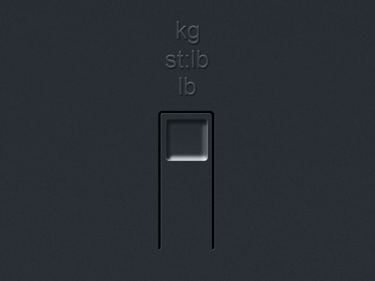 - Einheiten lassen sich zwischen kg, lb und st umschalten