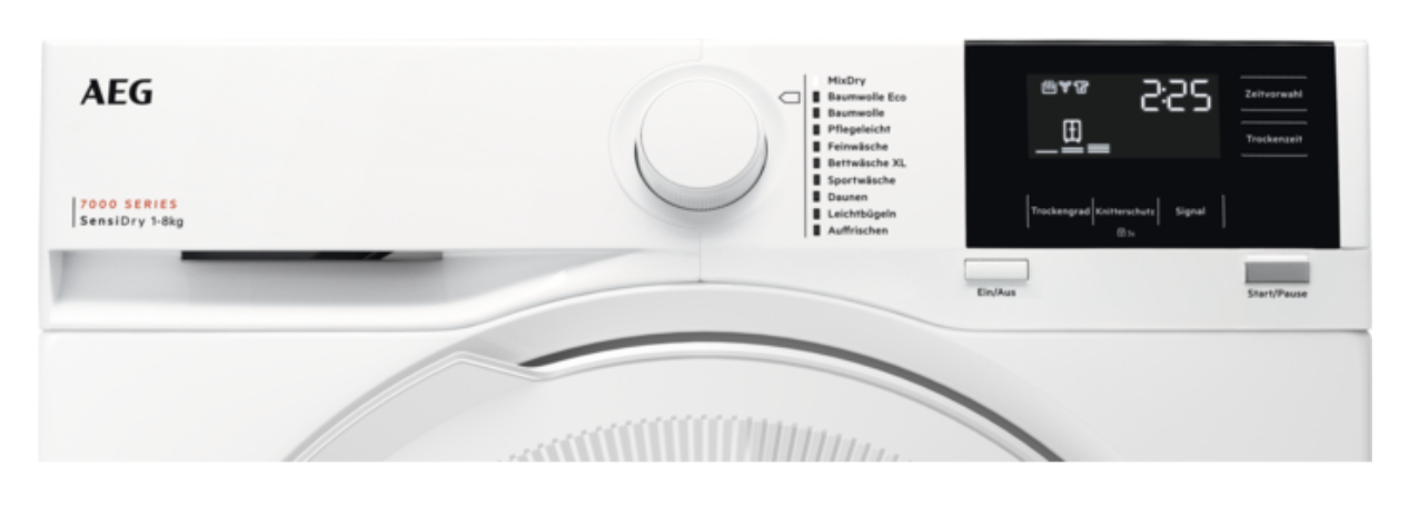 | Trockenprogramme: | Baumwolle, Feinwäsche/Seide, Daunenbekleidung/Duvet, Öko, Bügeltrocken, Mix, Sport |