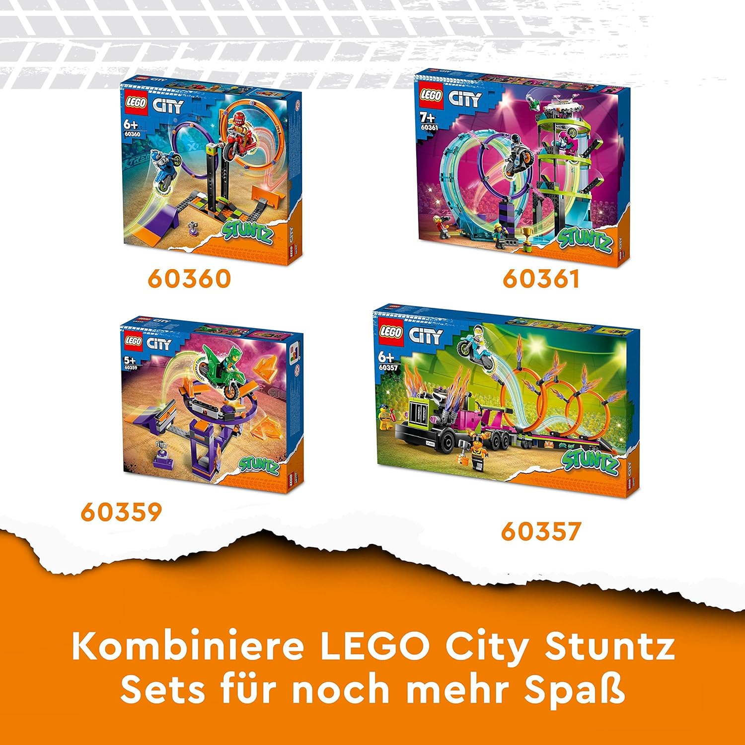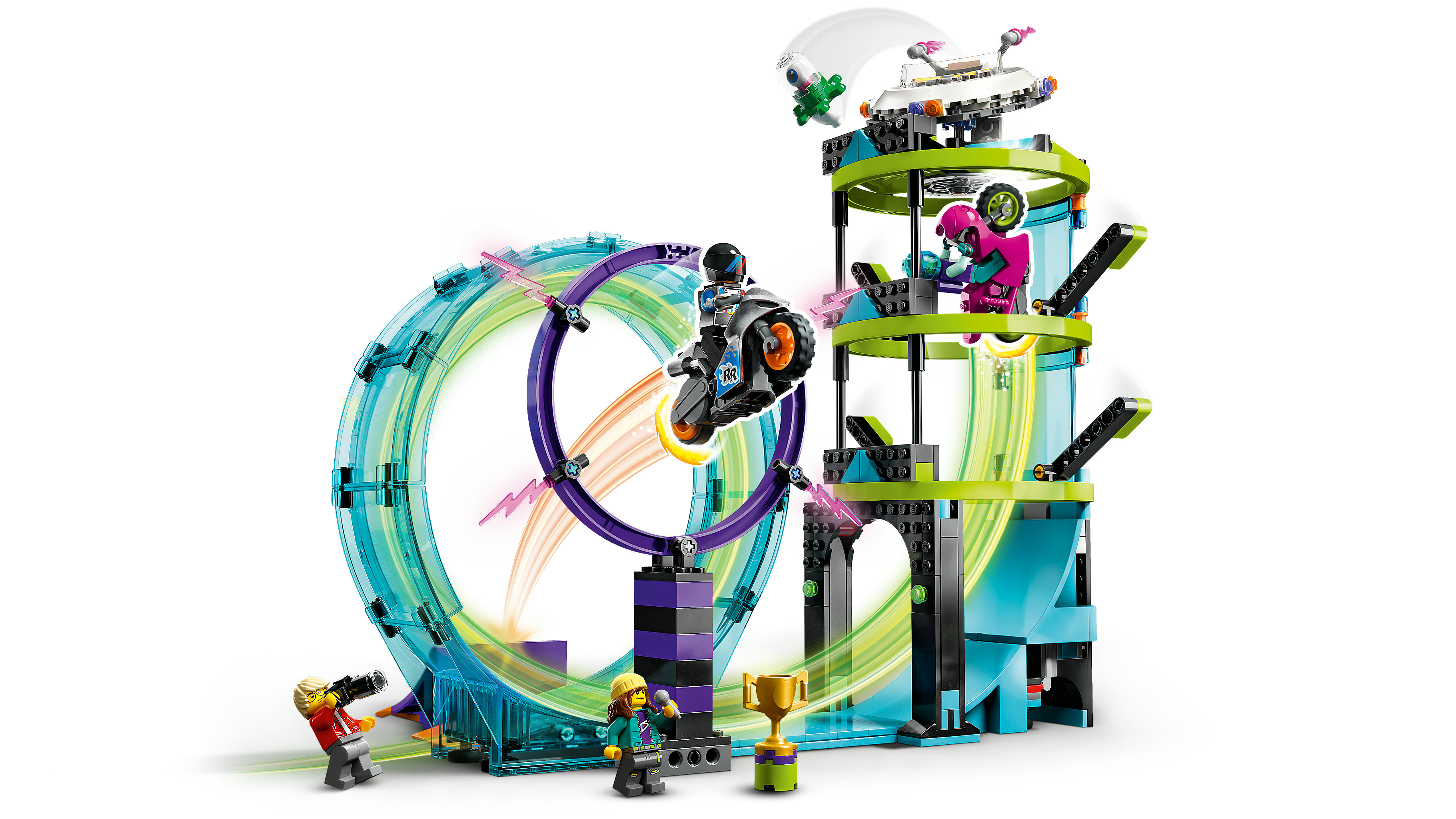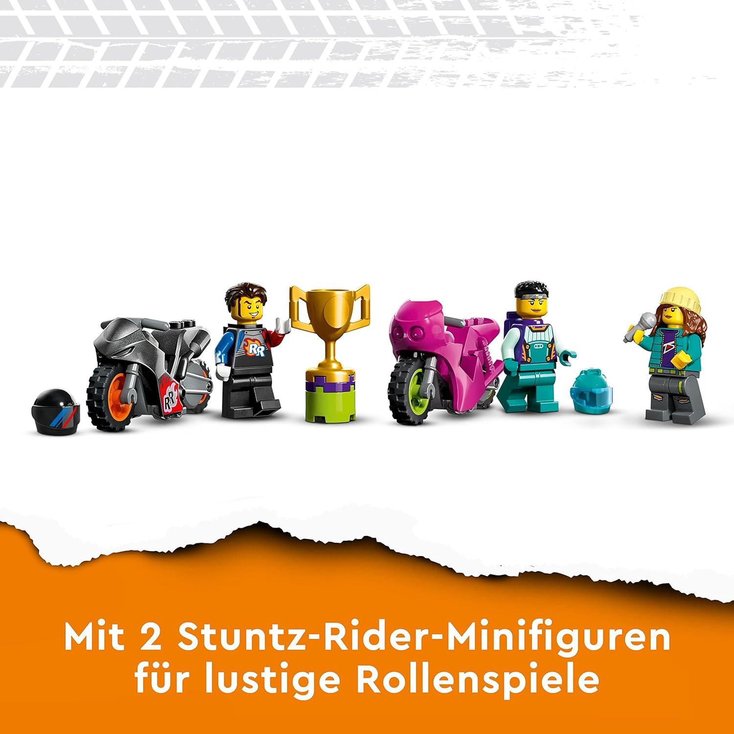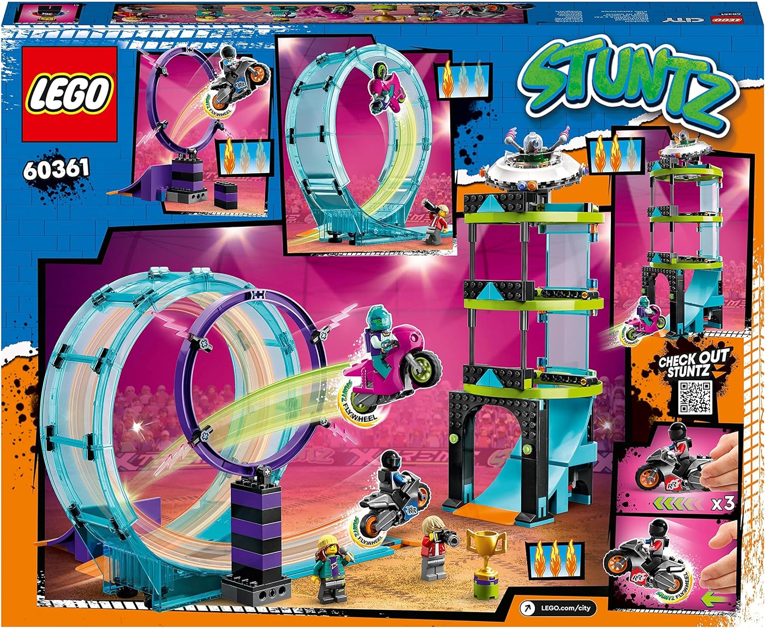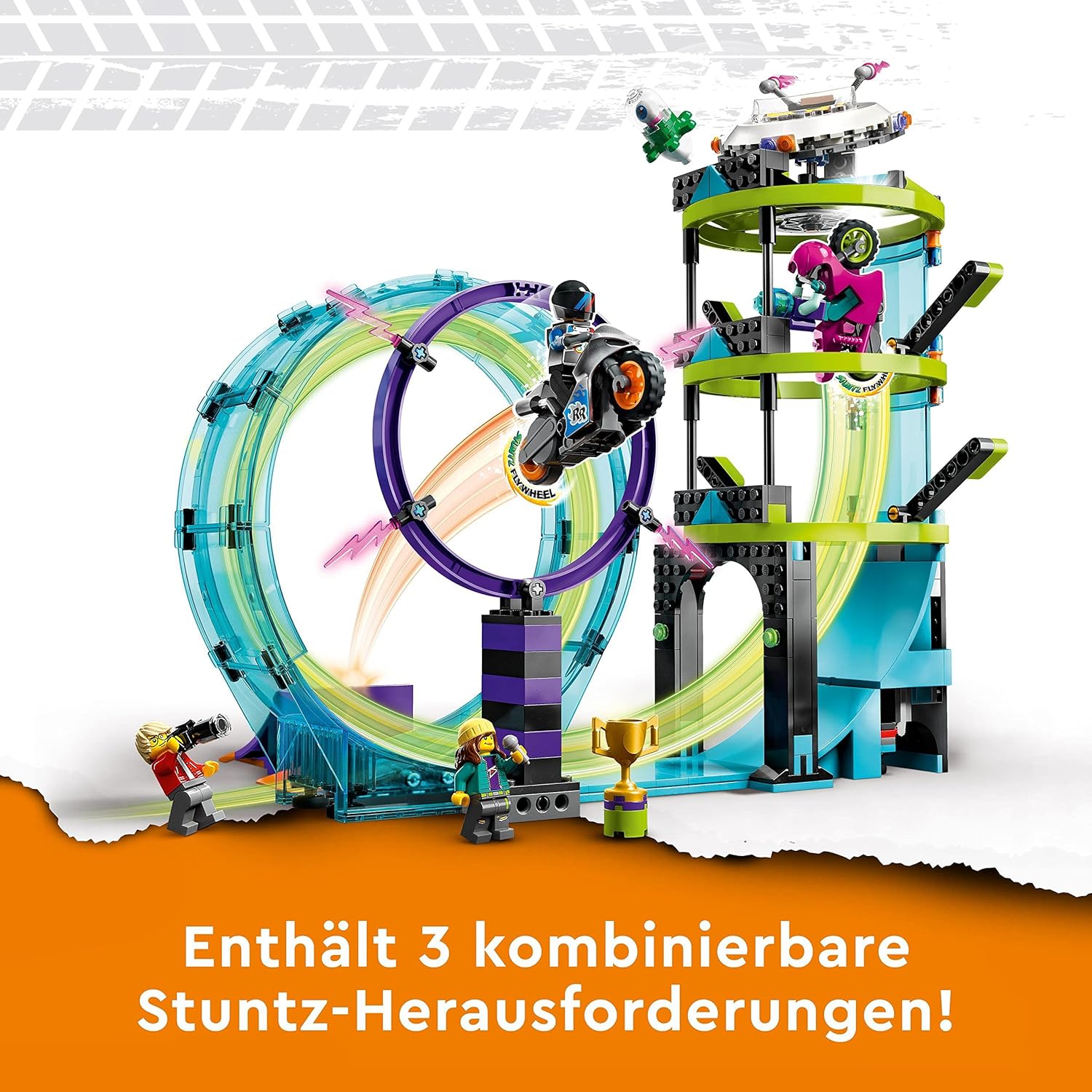 Ultimative Stuntfahrer-Challenge (60361), LEGO® City LEGO® City Ultimative Stuntfahrer-Challenge (60361) bietet stundenlangen Actionspaß. Dieses 7+ Set beinhaltet eine Dreifachfunktion, 2 Stuntbikes sowie eine Konstruktion, um Looping, Feuerreifen und Alien-Turm zu einer Challenge zu kombinieren. Kinder können ihr Können auf die Probe stellen, eine spektakuläre Stuntshow zeigen oder sich mit Freunden und Geschwistern Wettkämpfe um den Siegerpokal liefern. Interaktiver Bauspaß. Diesem LEGO City Stuntz Spielset liegt eine gedruckte Bauanleitung bei. Außerdem sind in der LEGO Builder App für Smartphones und Tablets intuitiv nutzbare Vergrößerungs- und Drehfunktionen verfügbar, die dein Kind beim Bauen digitale Modellansichten aus jedem Winkel betrachten lassen.