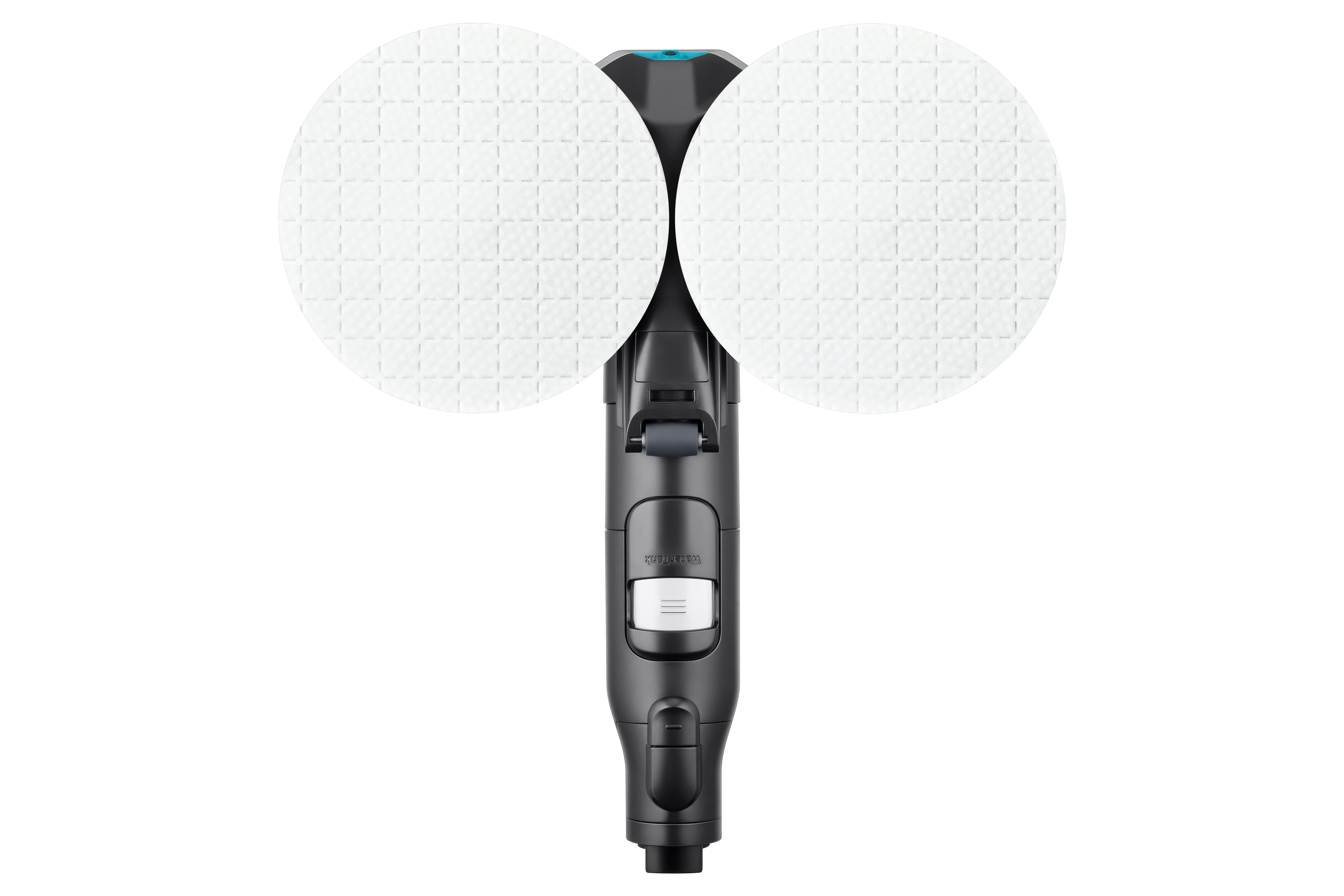 Reinige Hartböden einfach mit dem Spray Spinning Sweeper Wischaufsatz. Zwei größere und schwerere[1] Pads rotieren 100 Minuten[2] lang mit bis zu 260 Umdrehungen pro Minute und du kannst mit einem 150 ml fassenden Wassertank manuell mehr Wasser nachsprühen. Dabei hast du die Wahl, ob du wiederverwendbare, antibakterielle Mikrofaser-Pads[3] oder Einmal-Feuchttücher nutzen willst.