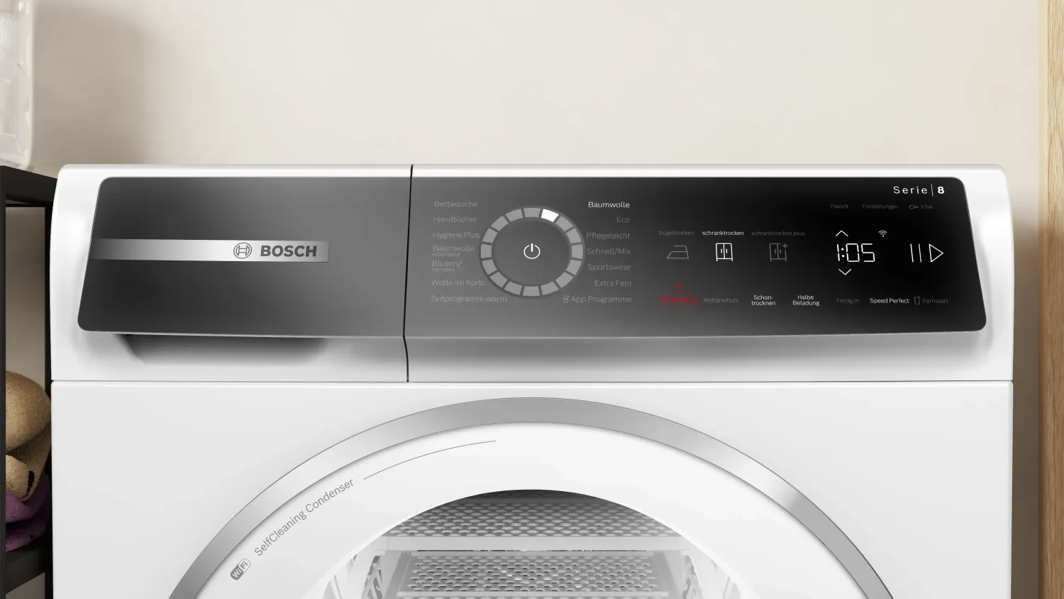 WQB246D91 Wärmepumpentrockner, 9 kg, Weiß. Der Wärmepumpentrockner mit konstant niedrigen Energieverbrauch und selbstreinigenden Kondensator pflegt dank Auto Dry und Smart Dry Deine Wäsche.