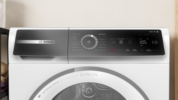 WRB247C90 Wärmepumpentrockner, 9 kg. Der Wärmepumpentrockner spart Energie dank des selbstreinigenden Kondensators, Air Max Dry und der besten Energieeffizienzklasse A.